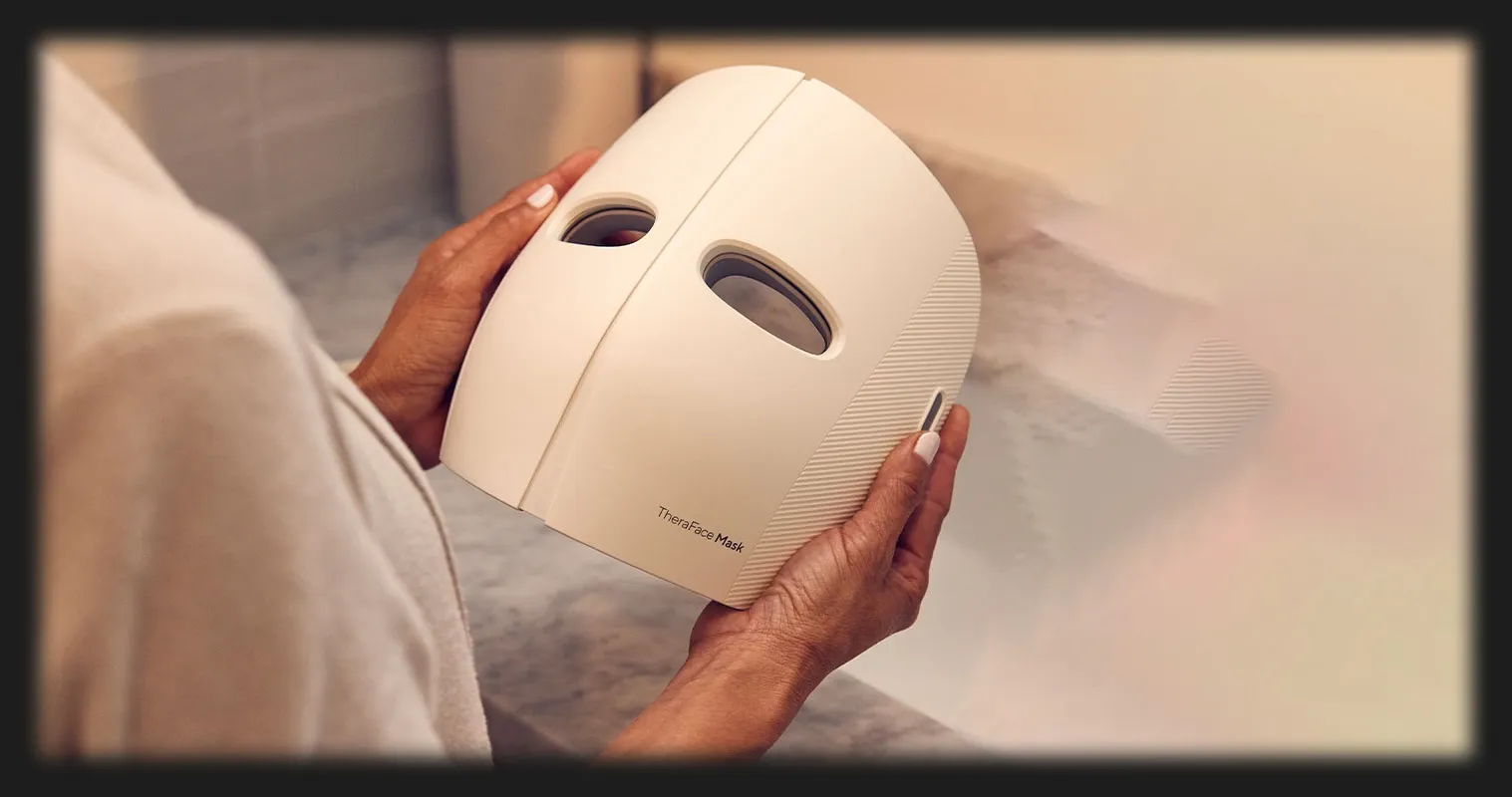 Маска для обличчя TheraFace використовує 4 види терапії для поліпшення загального стану шкіри обличчя. Набір з 648 медичних світлодіодів забезпечує втричі кращу ефективність, ніж маски конкурентів, і дозволяє проводити 3 типи терапії: червоне світло покращує тонус шкіри, ефективно усуваючи дрібні та глибокі зморшки. Комбінація червоного та інфрачервоного випромінювання знижує інтенсивність темних плям та підкреслює природний блиск шкіри. А синє світло бореться з бактеріями, зменшуючи почервоніння та запобігаючи виникненню акне.