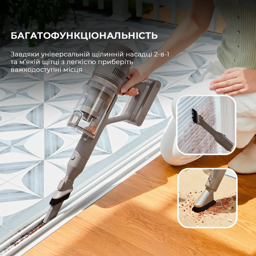 Пилосос Dreame Z10 Station оснащений двигуном, що забезпечує неймовірну потужність всмоктування до 20 000 Па. Це дозволяє йому з легкістю впоратись з пилом, шерстю домашніх тварин та іншими забрудненнями на різних поверхнях. Незалежно від того, чи ви прибираєте на паркеті, плитці чи килимах, цей пилосос гарантує високий результат. Він здатний захоплювати навіть найдрібніші частинки пилу, що робить його ідеальним вибором для домів, де є маленькі діти чи алергіки.