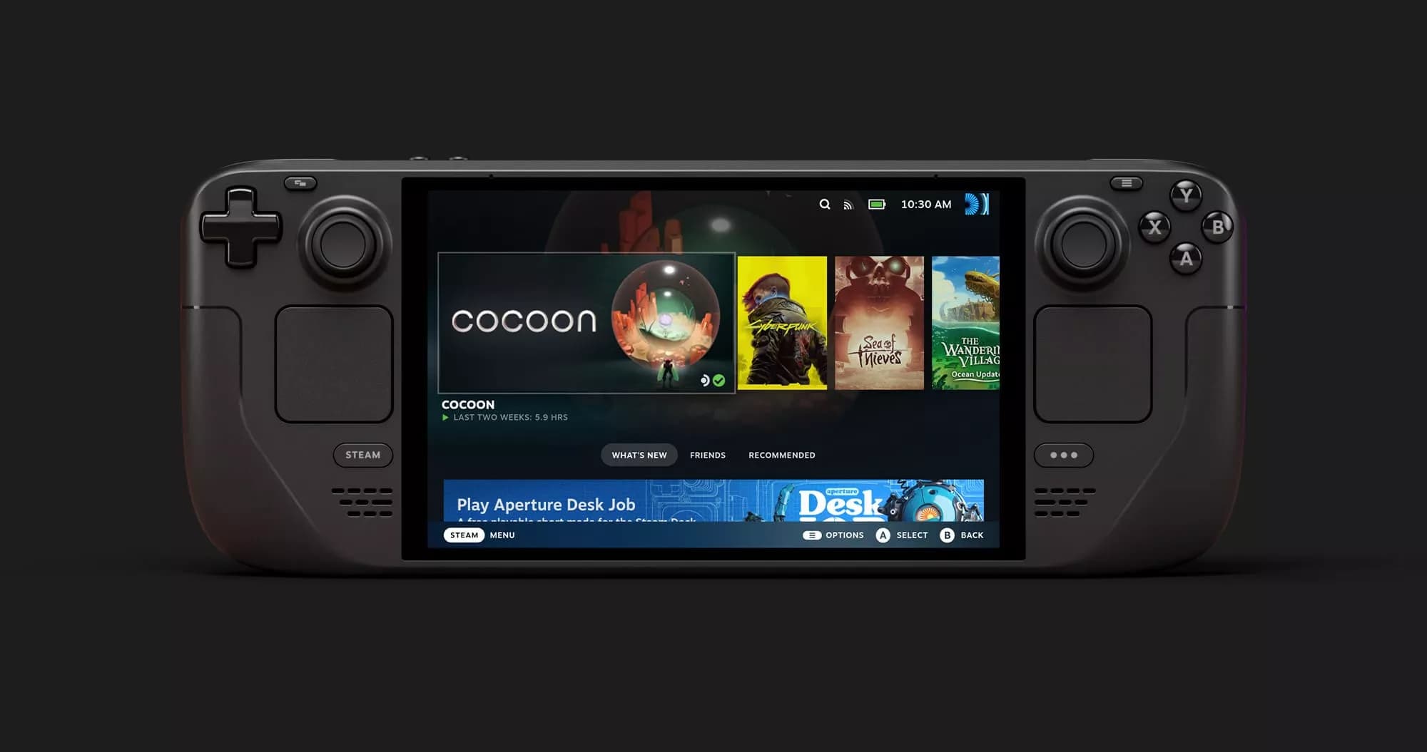 Steam Deck — портативний геймерський комп’ютер від Valve, який поєднує зручність консолі та свободу ПК. Тут немає обмеження “лише один магазин” або “лише свої ігри”: ви заходите у Steam зі своєю бібліотекою, ставите потрібні лаунчери, користуєтеся хмарними збереженнями й отримуєте повноцінну систему, яку можна взяти в дорогу або перетворити на домашній медіацентр біля телевізора. Саме це робить Steam Deck настільки практичним: він підлаштовується під ваш стиль гри, а не навпаки.