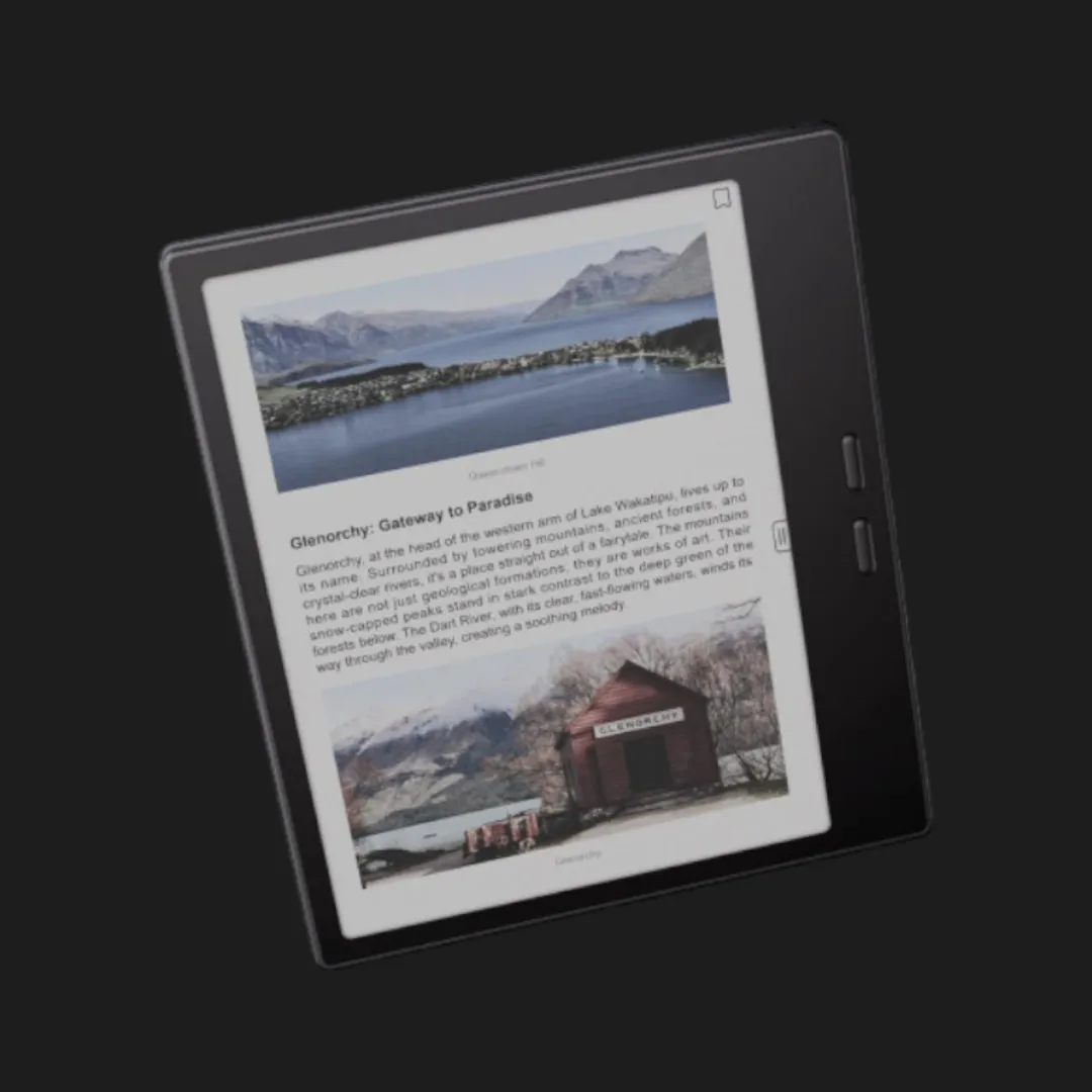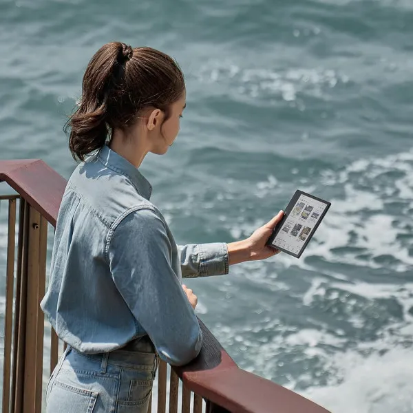Корпус електронної книги надзвичайно легкий — лише близько 195 г, тому її зручно тримати навіть однією рукою. Матова задня поверхня запобігає ковзанню, а тонкий профіль додає елегантності. На корпусі розташовані фізичні кнопки перегортання сторінок, що дозволяють комфортно читати без зайвих рухів по екрану. Великий акумулятор ємністю 2300 мА·год забезпечує кілька тижнів автономної роботи, що робить пристрій ідеальним супутником у подорожах або ділових поїздках.