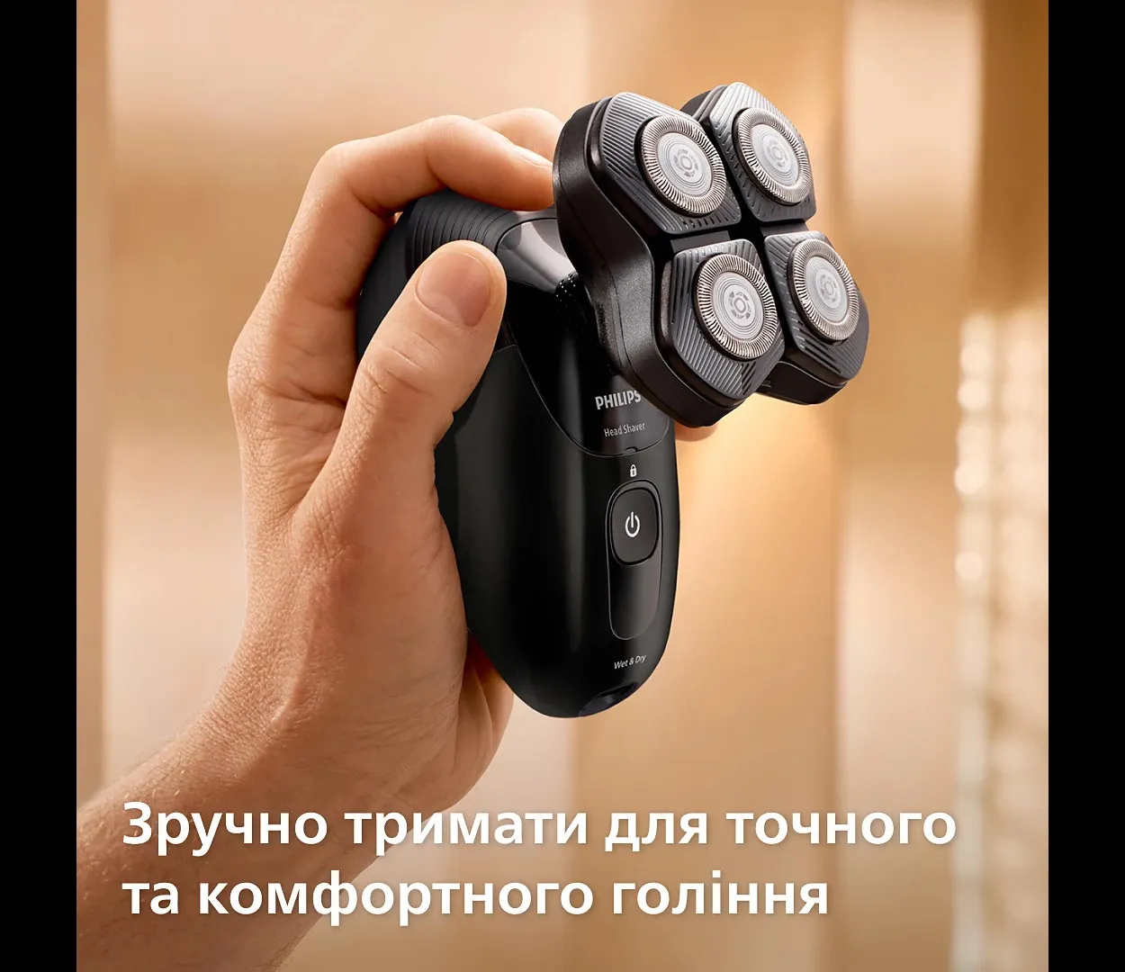 Philips Head Shaver Pro Series 5000 підтримує як сухе, так і вологе використання. Ви можете голитися в душі, з піною або гелем, обираючи формат, який підходить саме вам. Повністю водонепроникний корпус спрощує догляд за бритвою — достатньо промити її під струменем води після використання.