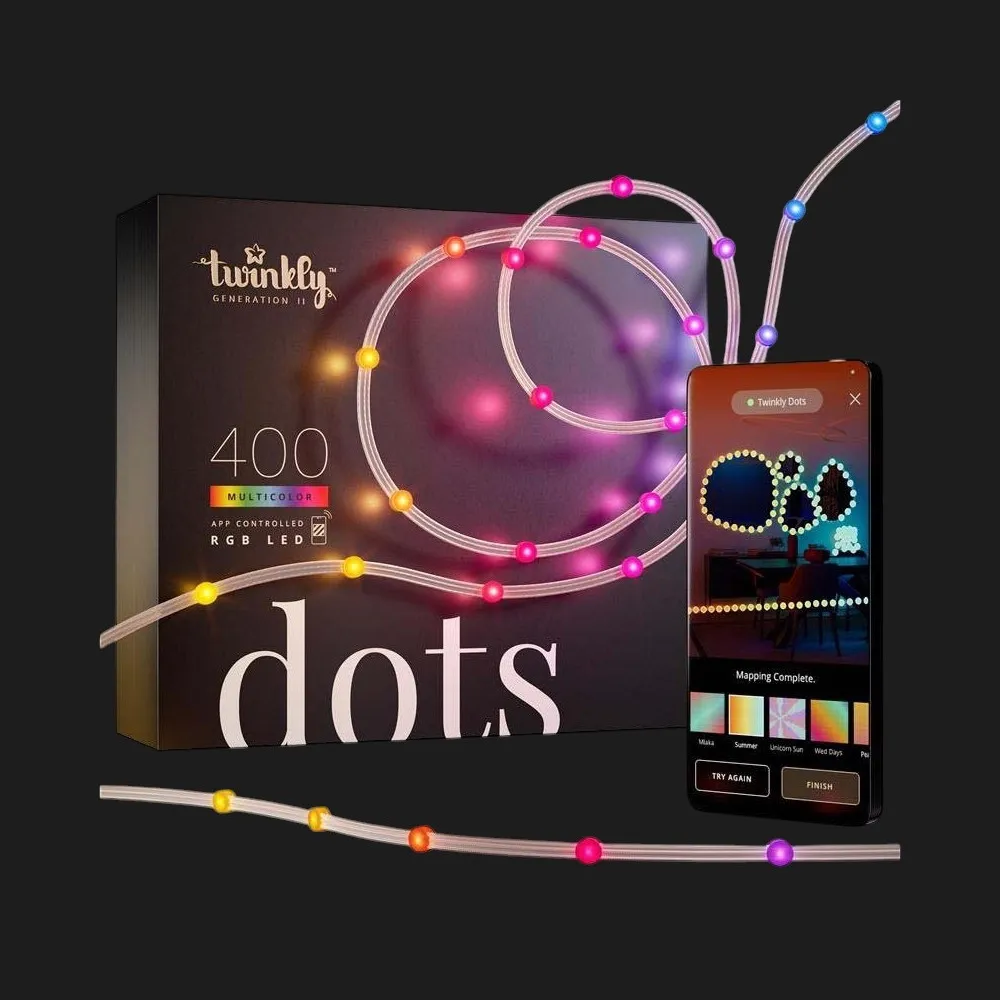 Гірлянда Twinkly Dots Lights RGB 400 — це ваш шлях до атмосфери затишку, свята чи святкового настрою. Завдяки 400 світлодіодам, розташованим на довжині 20 метрів, вона легко перетворює звичайний простір на стильний, казковий простір. Прозорий кабель забезпечує акуратний і непомітний вигляд, тож гірлянда підходить як для інтер’єру, так і для зовнішнього декору. З нею легко створити романтичну обстановку, святкову атмосферу або незабутню вечірку — достатньо увімкнути світло. Саме таке рішення стане чудовим доповненням вашого дому чи саду.