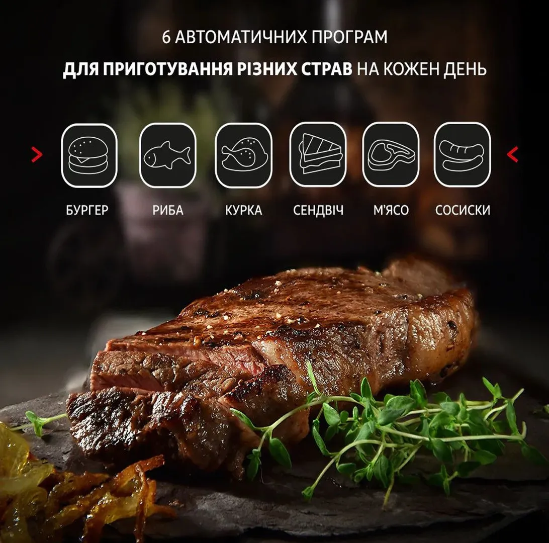 Гриль стане справжньою знахідкою для поціновувачів м’яса, адже він дозволяє точно вибрати ступінь прожарювання — від "rare" до "well-done". Сім’ї з дітьми оцінять можливість готувати здорові страви без зайвого жиру. Тим, хто живе в ритмі великого міста, прилад дозволить готувати без зайвих зусиль завдяки автоматичним програмам. Кулінарні ентузіасти зможуть експериментувати в ручному режимі, створюючи авторські страви. А для тих, хто цінує порядок, важливою перевагою стане просте очищення пристрою, адже знімні частини можна мити в посудомийній машині.