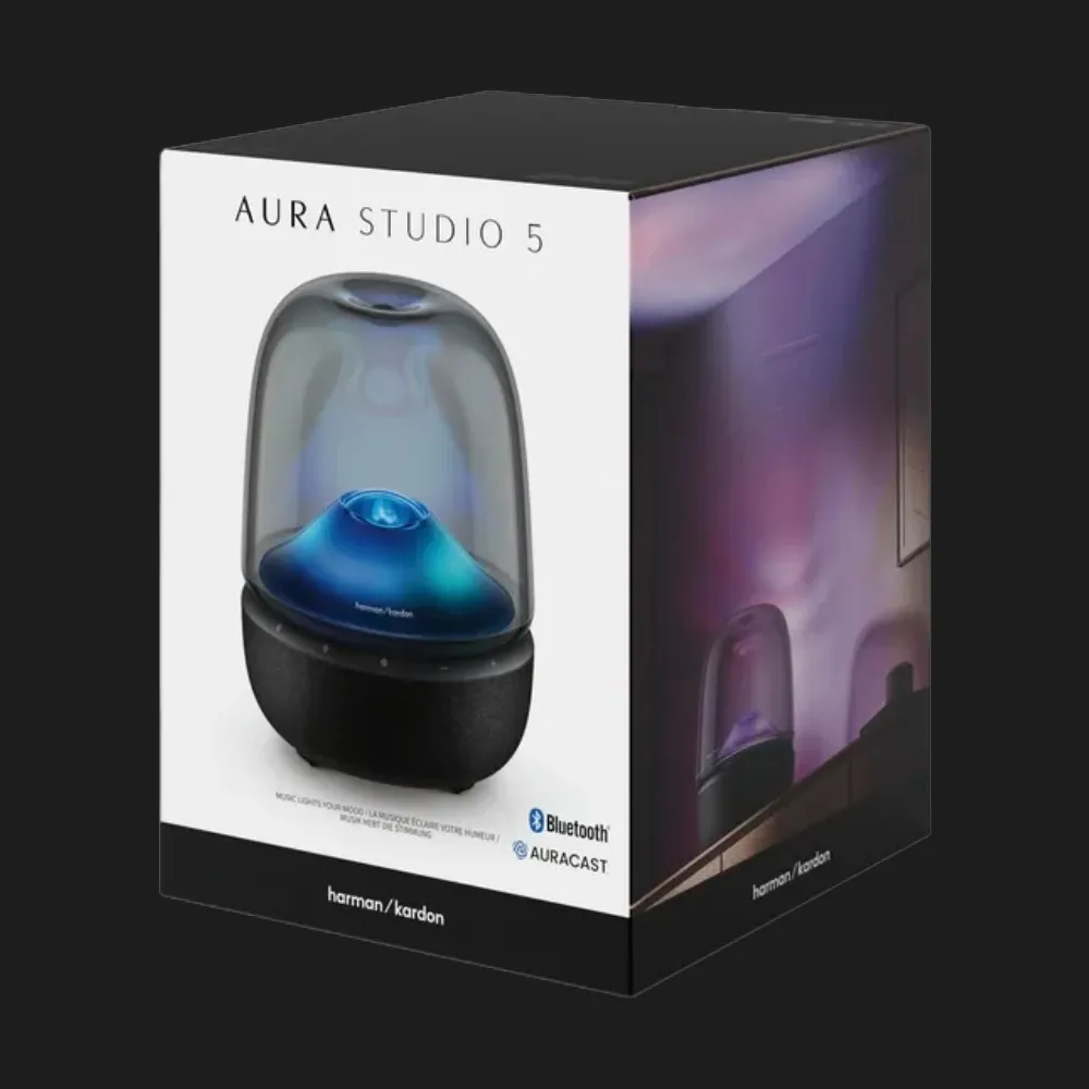 Harman/Kardon Aura Studio 5 — це акустика, яка одразу привертає увагу не лише звучанням, а й дизайном. Прозорий купол із фірмовим світловим оформленням перетворює колонку на стильний арт-об’єкт, що органічно доповнює сучасний простір. Вона створена для тих, хто хоче отримувати емоції не тільки від музики, а й від атмосфери навколо. Aura Studio 5 легко стане центральним елементом вашої кімнати, незалежно від стилю інтер’єру.