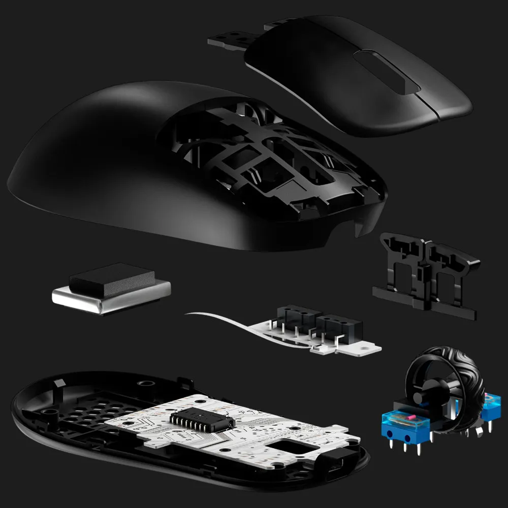 Корпус миші має футуристичну форму, яка одразу переходить у стильну ігрову станцію — підсвічування RGB, матове покриття, ідеально збалансований центр ваги. Дві бічні панелі можна змінити, щоб відобразити власний стиль. Кабель з обплетенням мінімізує тертя, а підошва з PTFE-гільзами забезпечує плавний рух по будь-якій поверхні.