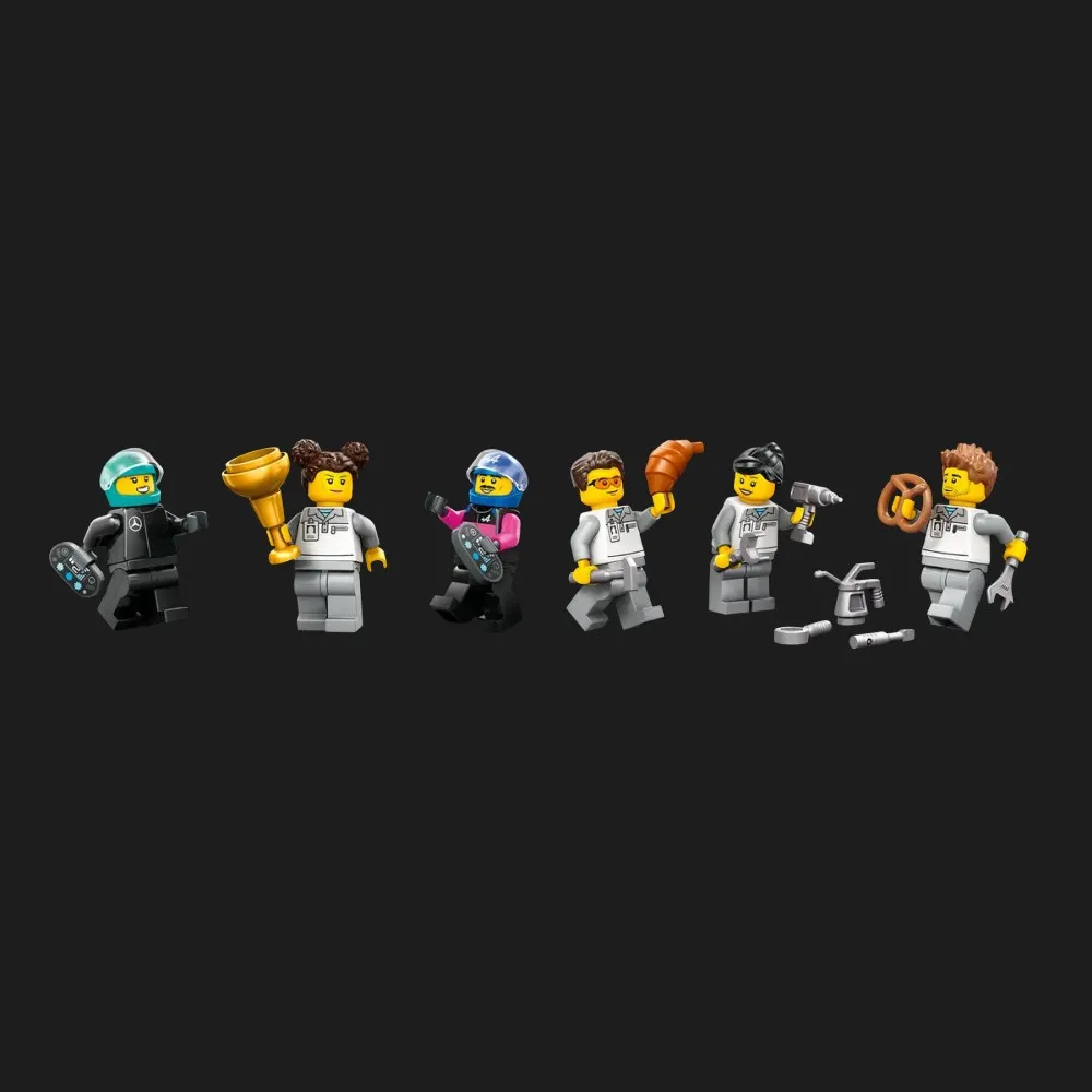 До набору входять мініфігурки пілотів та механіків, що дозволяє відтворювати різноманітні сцени з життя гоночної команди. Діти можуть брати на себе ролі різних персонажів, що сприяє розвитку соціальних навичок та уяви. Відтворення гонок, підготовка машин до старту та святкування перемог — все це доступно з цим набором. Гра з LEGO City «F1 гараж Mercedes-AMG & Alpine Cars» дозволяє створювати безліч захоплюючих історій та сценаріїв, що робить кожну гру унікальною та цікавою.