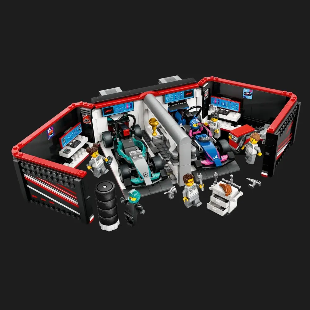 Конструктор LEGO City «F1 гараж Mercedes-AMG & Alpine Cars» — це ідеальний вибір для юних шанувальників швидких автомобілів та захоплюючих перегонів. Цей набір дозволяє створити детальну модель гоночного гаража з усіма необхідними атрибутами для обслуговування високошвидкісних машин. Відкриваючи коробку, дитина потрапляє у світ професійних перегонів, де кожна деталь має своє значення. Зібравши гараж, можна відтворювати сцени з реальних гонок, що робить гру ще більш захопливою.