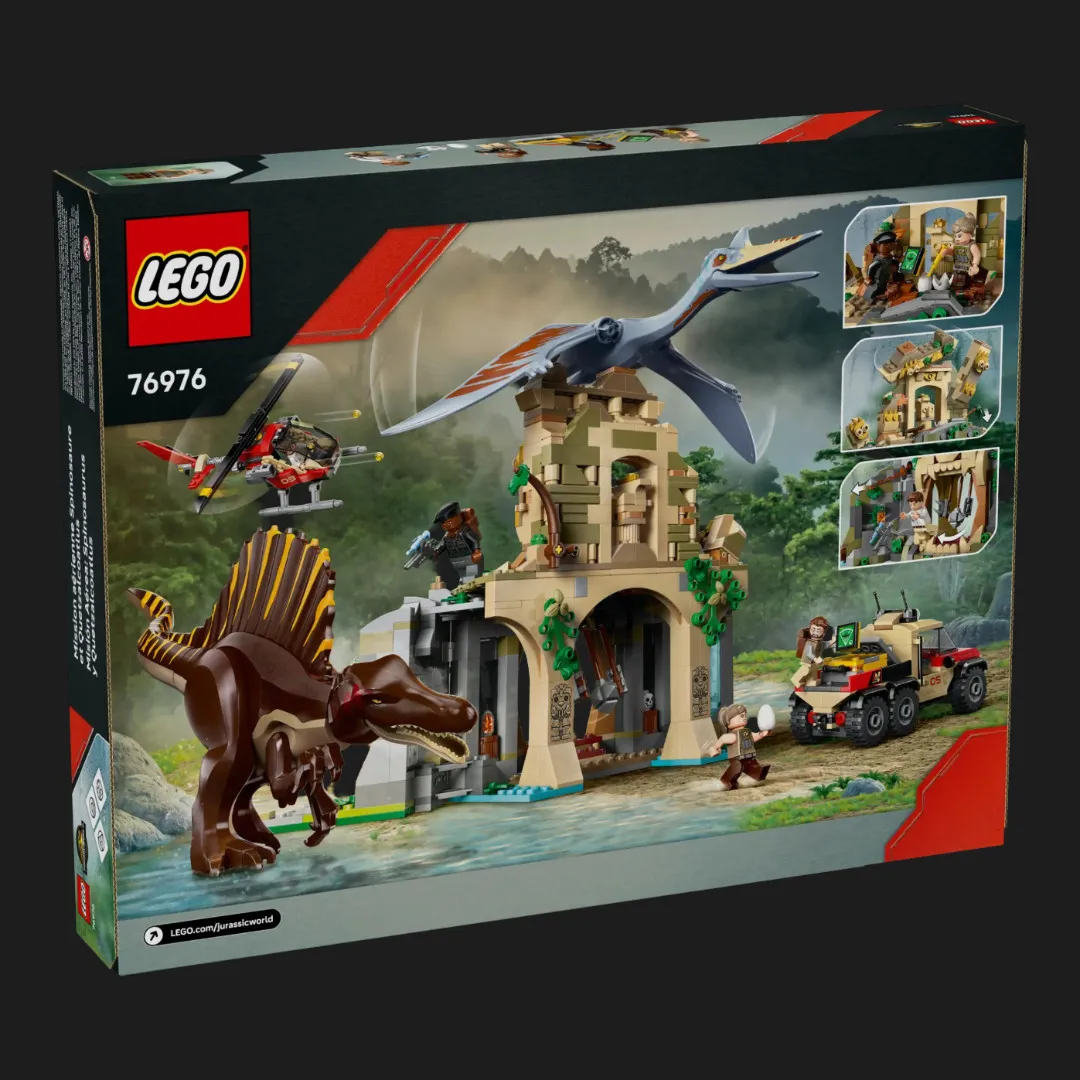 Набір LEGO Jurassic World Spinosaurus включає детально опрацьовану фігурку спінозавра з рухомими кінцівками, щелепою та хвостом, що дозволяє відтворювати реалістичні сцени переслідування та пригод. У комплекті є транспортні засоби, мініфігурки дослідників зі спеціальними інструментами, а також додаткові елементи, які роблять гру максимально інтерактивною та захопливою.