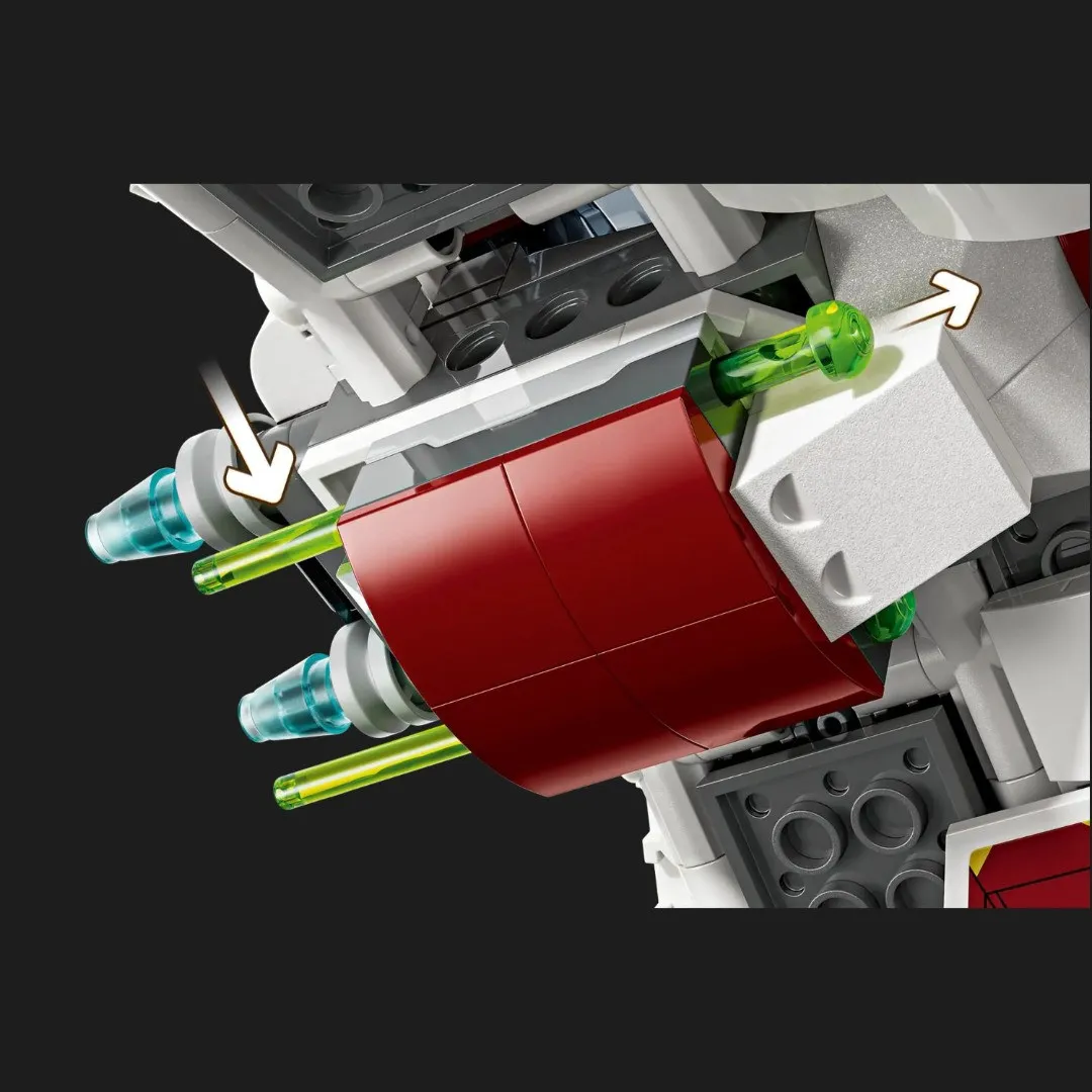Асока может сесть в кабину, кроме того, в корабле комфортно разместится астромеханический дроид R7-A7, а также найдется место для двух световых мечей. Регулируемые крылья позволяют выбирать между скоростным режимом полета или боевым строем, придающим настоящий драйв. А еще — два пружинных шутера, чтобы испытать космические бои. Такой уровень интерактивности делает еще более интересным сбор конструктора.