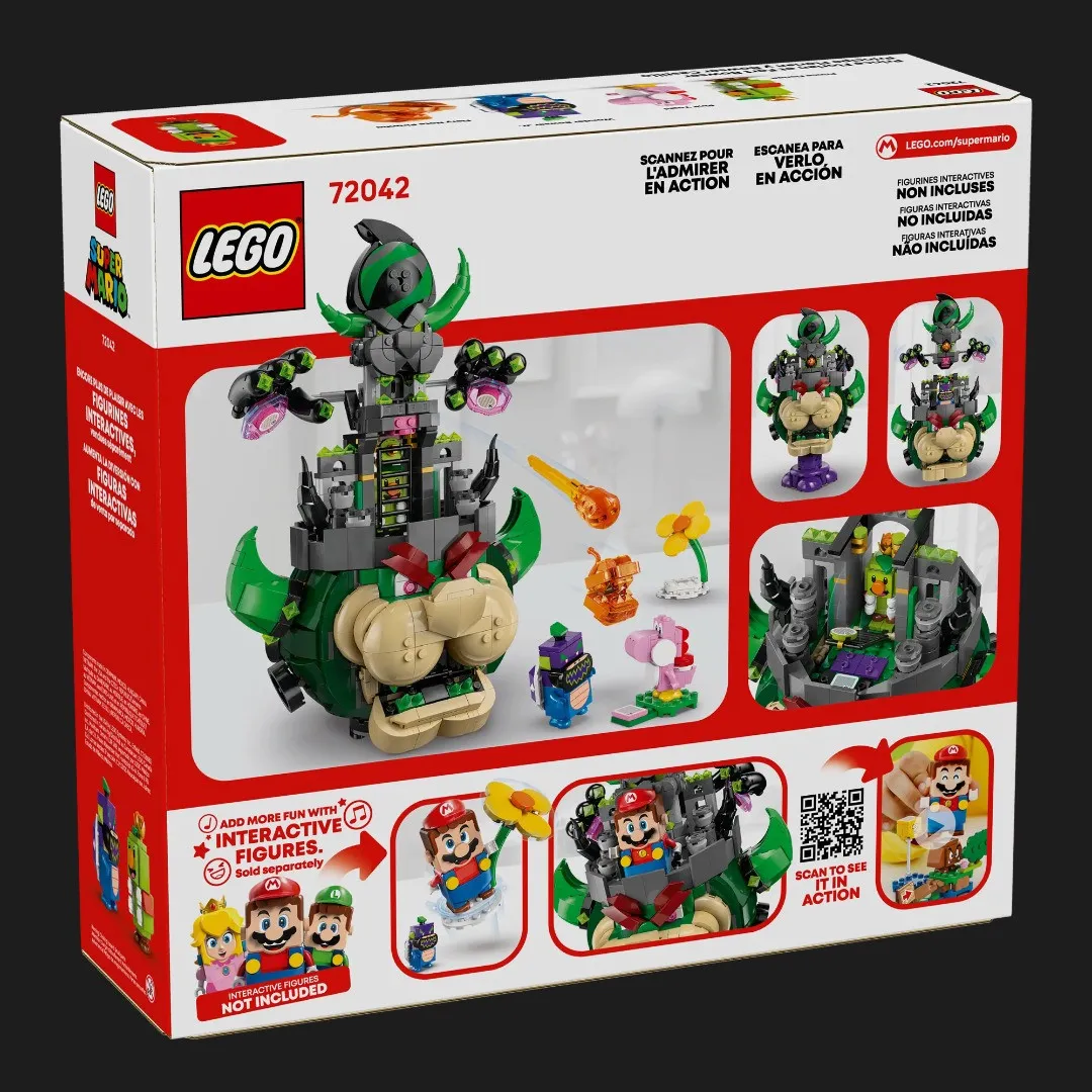 • Модель Фортеці Боузера у цьому наборі з 1,251 деталі має висоту понад 31 см, ширину 21 см та глибину 22 см.