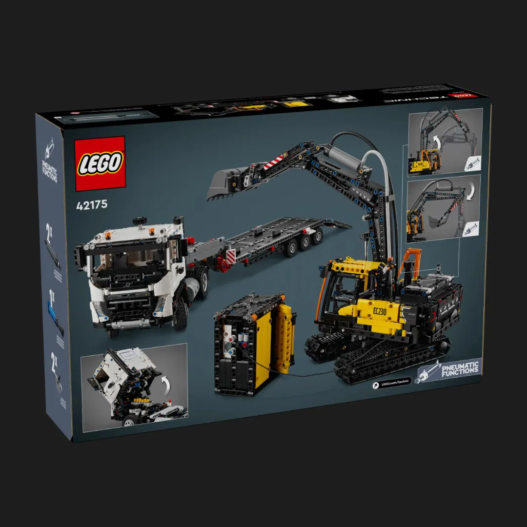 LEGO Technic Volvo FMX Truck & EC230 Electric Excavator (42175) — це не просто набір для складання, а справжній виклик для ентузіастів техніки та інженерії. Завдяки детальній відтвореній конструкції, кожен елемент цього комплекту передає всю потужність і точність справжньої будівельної техніки Volvo.
