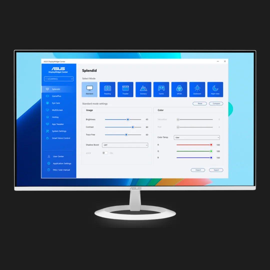 Технології ASUS Eye Care, включно з Flicker-Free та фільтром синього світла, знижують навантаження на очі. Монітор підходить для багатогодинної роботи, навчання або домашнього використання без дискомфорту.