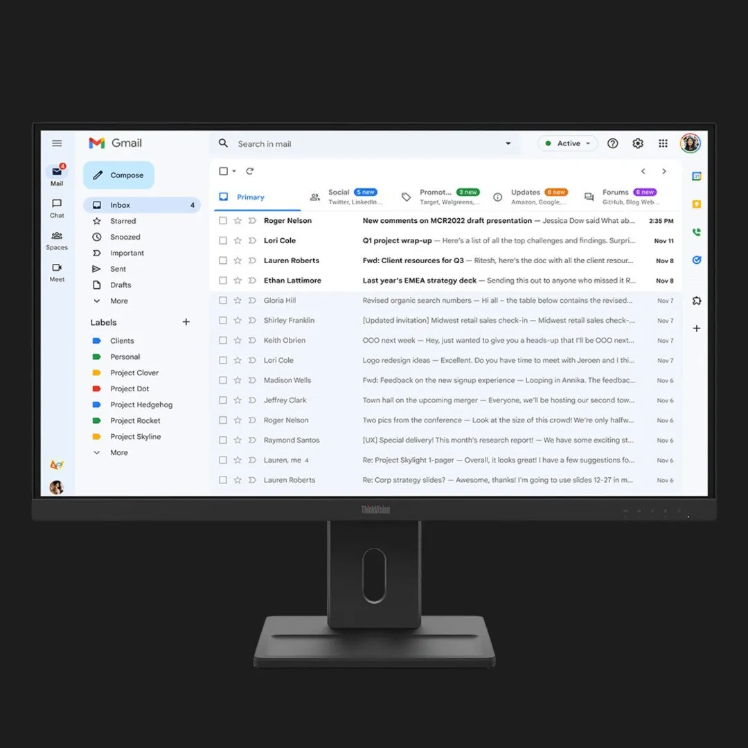 Екран Lenovo E27-40 з IPS-матрицею передає кольори м’яко, з правильною насиченістю та відчуттям реальності. З будь-якого кута огляду картинка залишається чіткою, без викривлень чи тьмяності. Це особливо важливо під час роботи з графікою, відео або під час спільного перегляду контенту. Висока частота оновлення забезпечує плавність рухів та природність динаміки. Кожна деталь виглядає охайно й точно, а кольори не втомлюють зір навіть при тривалій роботі.