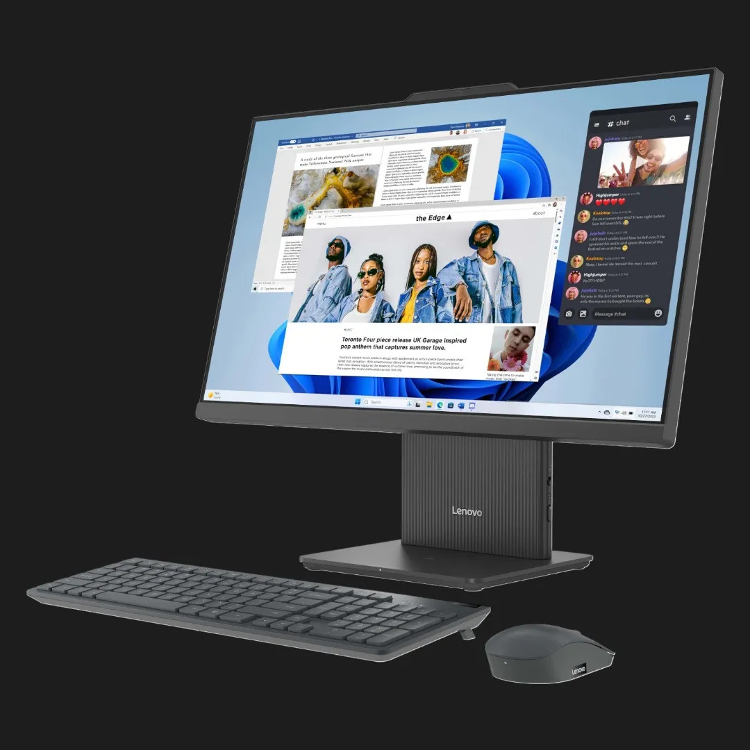Компактний корпус і витончена підставка економлять простір на робочому столі, роблячи моноблок ідеальним рішенням для домашніх робочих зон або офісу. Пристрій поєднує сучасний дизайн із практичністю та створює охайний, організований простір завдяки відсутності зайвих кабелів.