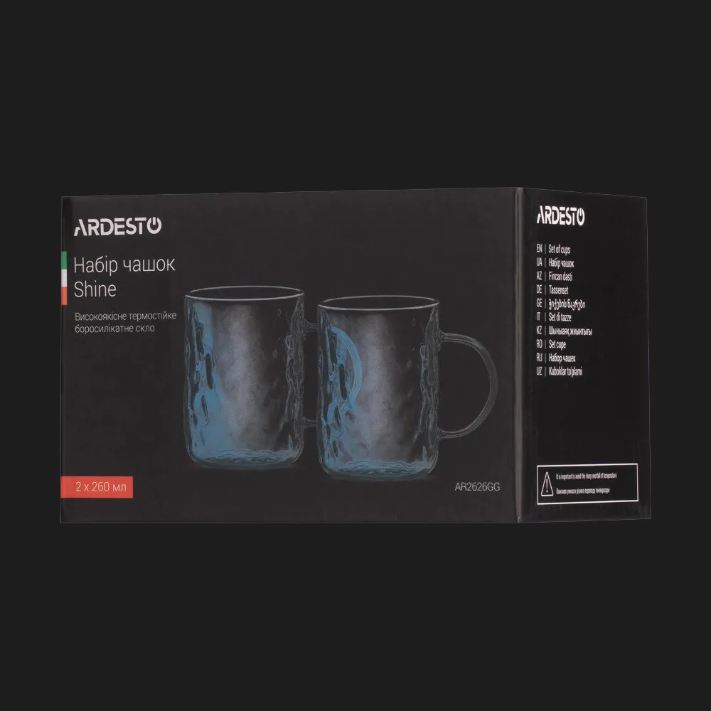 Набір чашок Ardesto Shine об’ємом 260 мл — це гармонійне поєднання елегантності та практичності. Прозоре боросилікатне скло дозволяє спостерігати за грою кольорів вашого улюбленого напою, створюючи особливу атмосферу тепла й затишку.