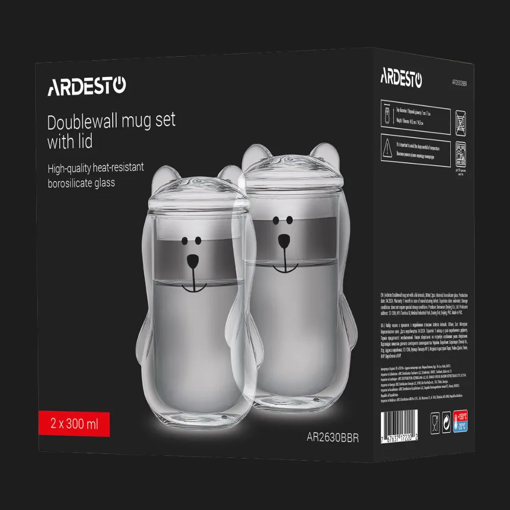 Чашки Ardesto Animals витримують температури від –20°C до +150°C, що робить їх універсальними для гарячих і холодних напоїв. Боросилікатне скло не тріскає при перепадах температур і не вбирає запахи. Завдяки міцній конструкції набір служитиме довго, навіть при щоденному використанні. Ви можете мити їх вручну або в посудомийній машині. Це практичний вибір для дому, офісу чи подарунка.