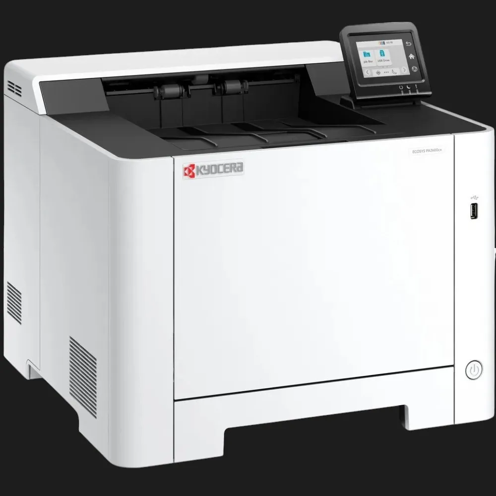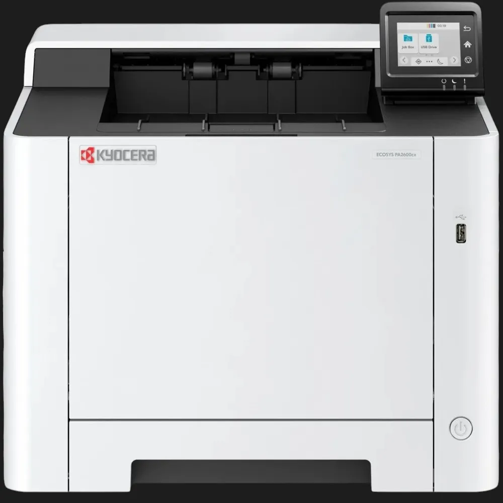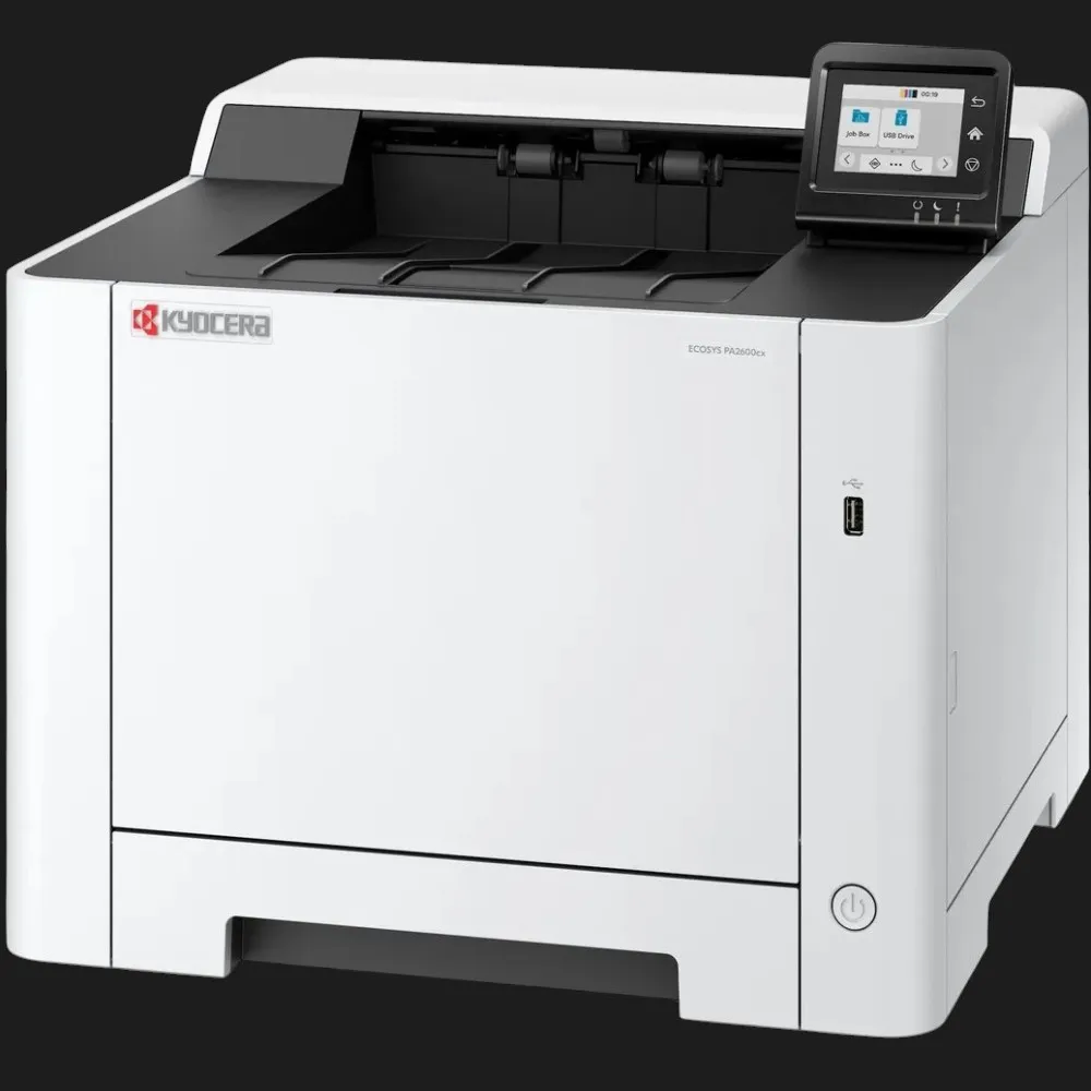Kyocera PA2600cx відрізняється низькою вартістю експлуатації завдяки довговічним компонентам і оптимізованому енергоспоживанню. Пристрій витримує великі навантаження, забезпечуючи стабільність роботи навіть при інтенсивному друці.