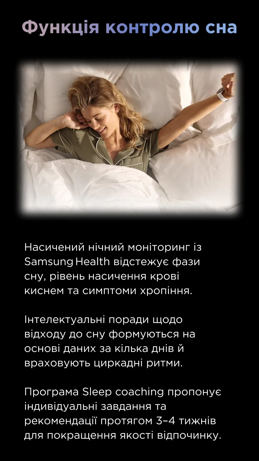 • Galaxy AI підлаштовує сигнал датчика пульсу відповідно до ваших рухів, точно відстежуючи ваш пульс навіть під час інтенсивних тренувань.