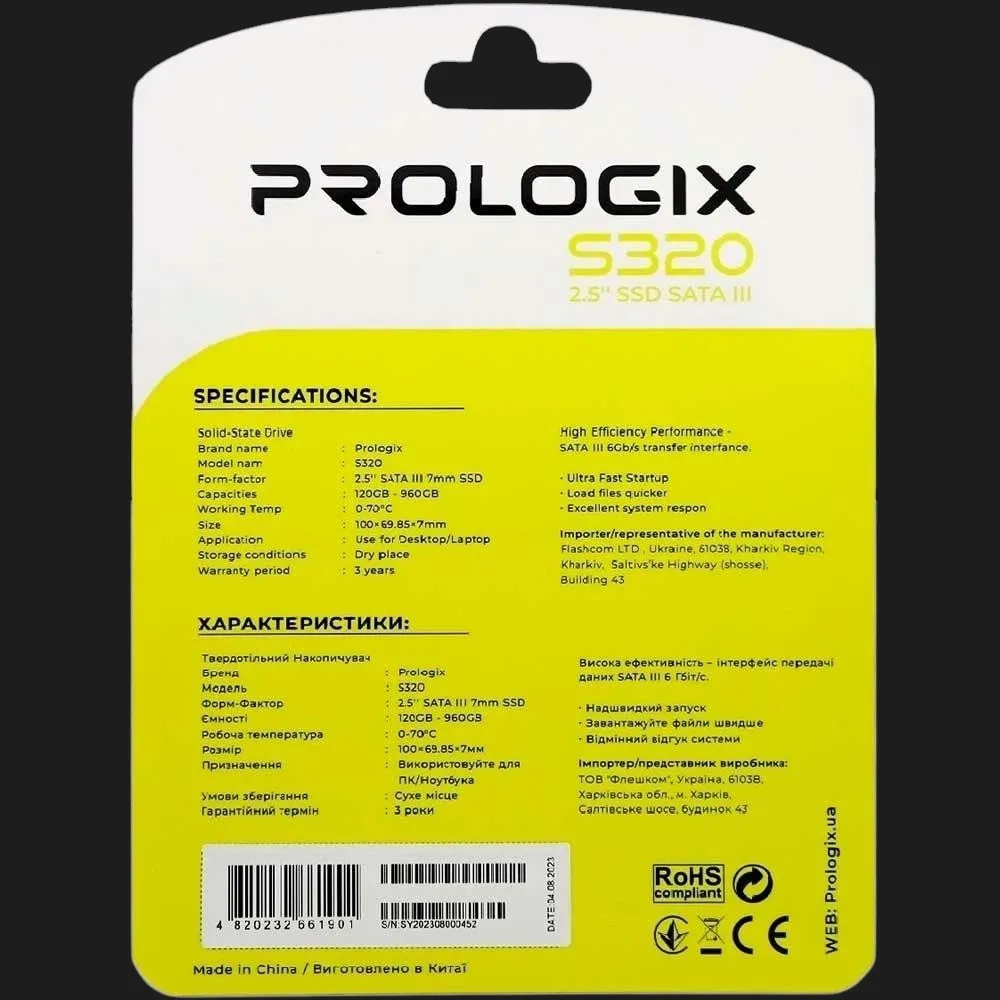SSD Prologix S320 — це універсальне рішення для модернізації як старих, так і нових систем, яке дозволяє значно підвищити продуктивність без переплати. Він ідеально підходить для офісної роботи, навчання, мультимедійних задач і повсякденного використання. Простота встановлення дозволяє легко виконати апгрейд навіть без спеціальних навичок. Завдяки поєднанню доступної ціни та якісних характеристик цей накопичувач вигідно вирізняється серед конкурентів.