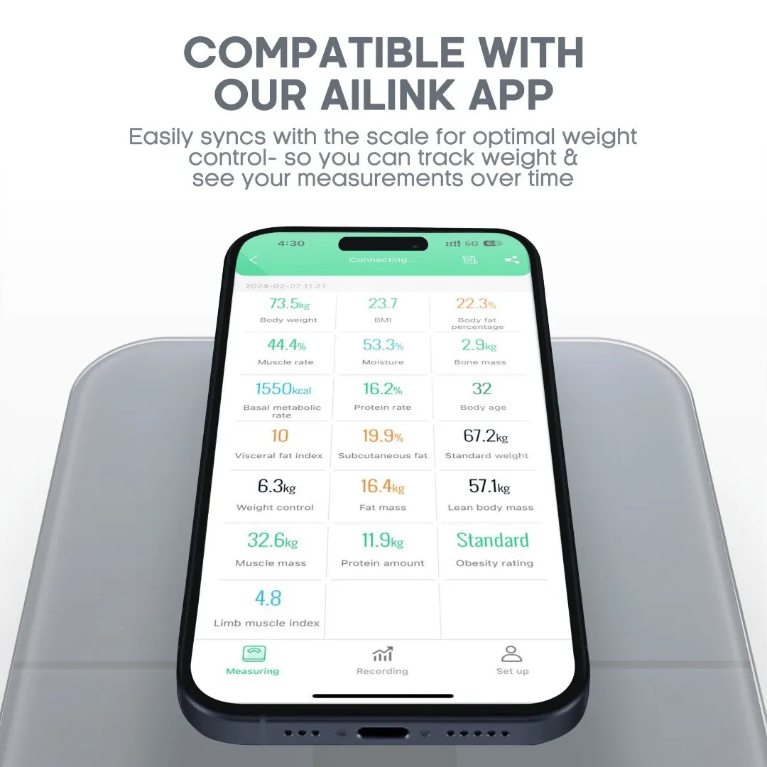 Завдяки чутливим сенсорам і сучасній технології біоелектричного імпедансу (BIA) ви отримуєте чітку картину про стан вашого тіла прямо на смартфоні. Ці ваги – це не просто домашній інструмент, а ваш персональний фітнес-коуч, який щодня допомагає слідкувати за прогресом та мотивує вас до нових досягнень у здоровому способі життя.