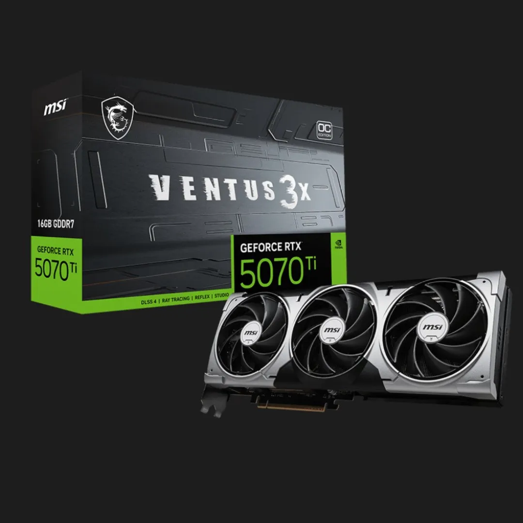 MSI GeForce RTX 5070 Ti Ventus 3X OC оснащена 16 ГБ надшвидкої відеопам’яті GDDR7, що забезпечує миттєву обробку складних графічних сцен і стабільну роботу у важких іграх, 3D-моделюванні, відеомонтажі та рендерингу. Збільшений обсяг пам’яті робить цю модель ідеальним вибором для 4K-геймінгу та роботи з високоякісним контентом.