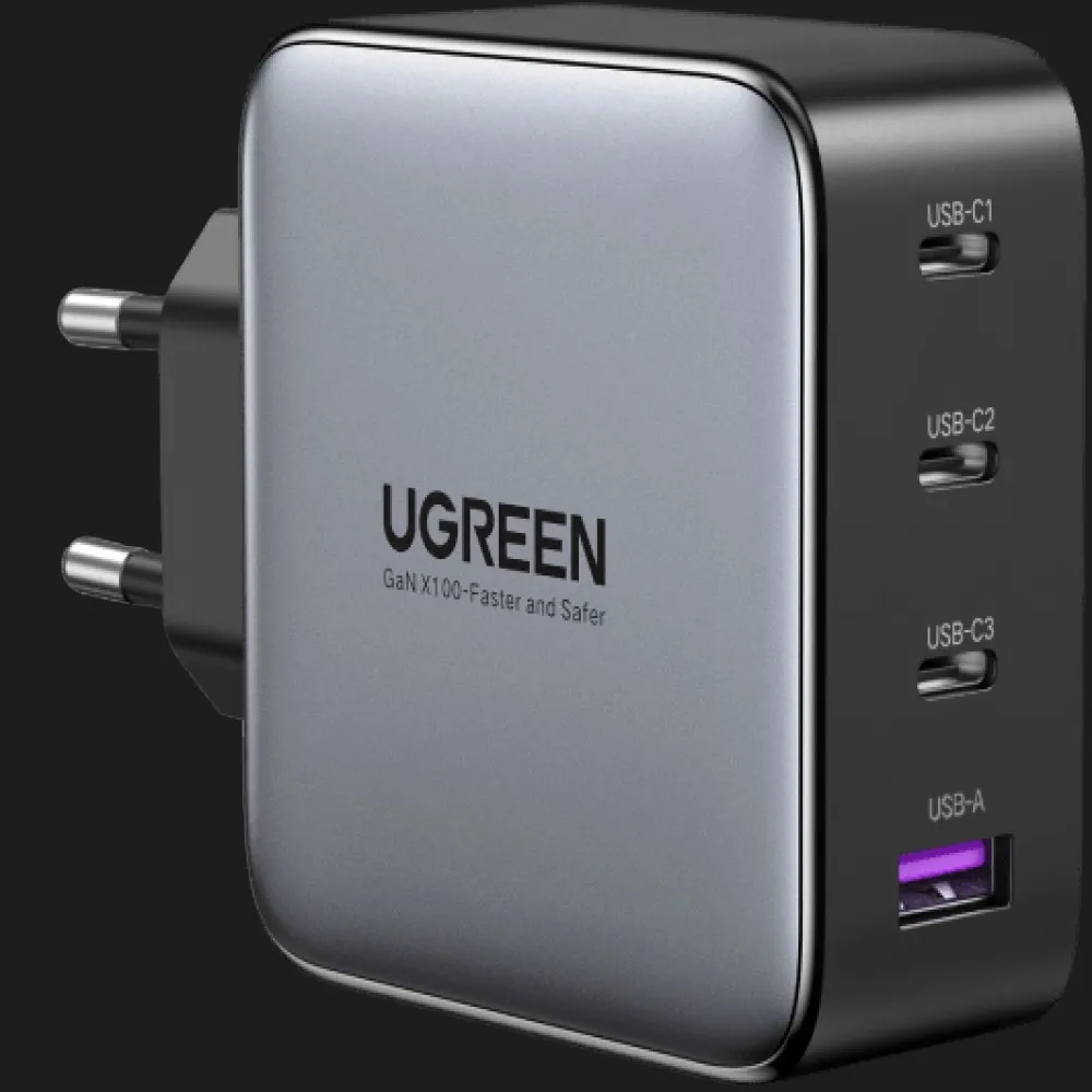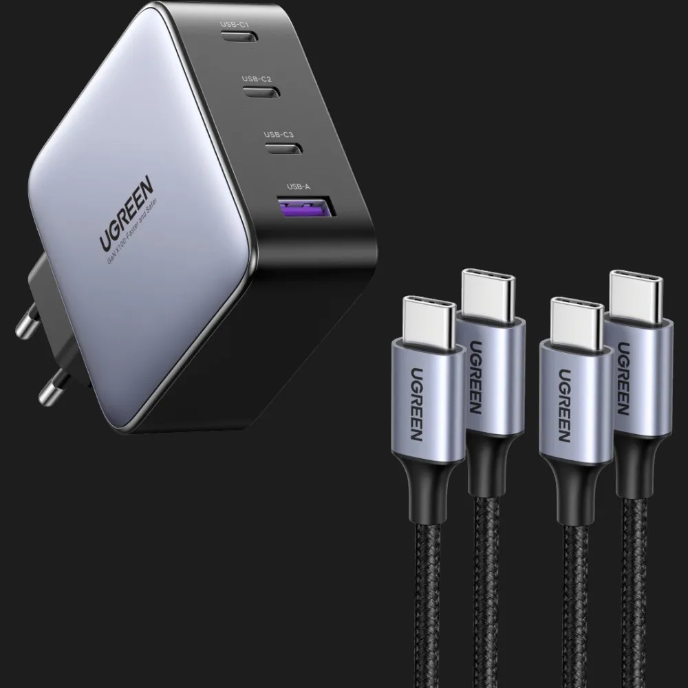Блок питания UGREEN CD226 100W USB-A+3xUSB-C GaN Tech Fast Charger with Cable (Gray)