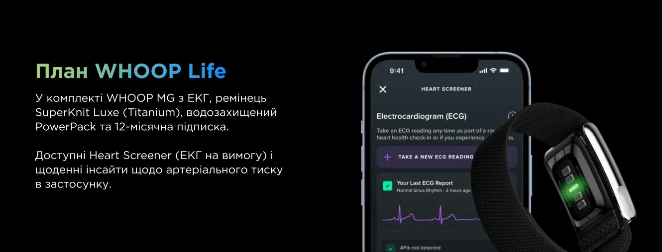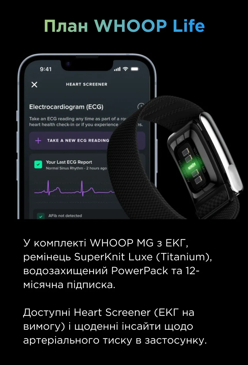 Браслет WHOOP в версии MG с подпиской Life предлагает функции медицинского уровня, выходящие за рамки классического фитнес-трекера.