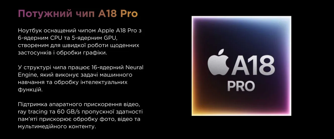 Новый МакБук Нео от Apple оснащен фирменным чипом Apple A18 Pro.