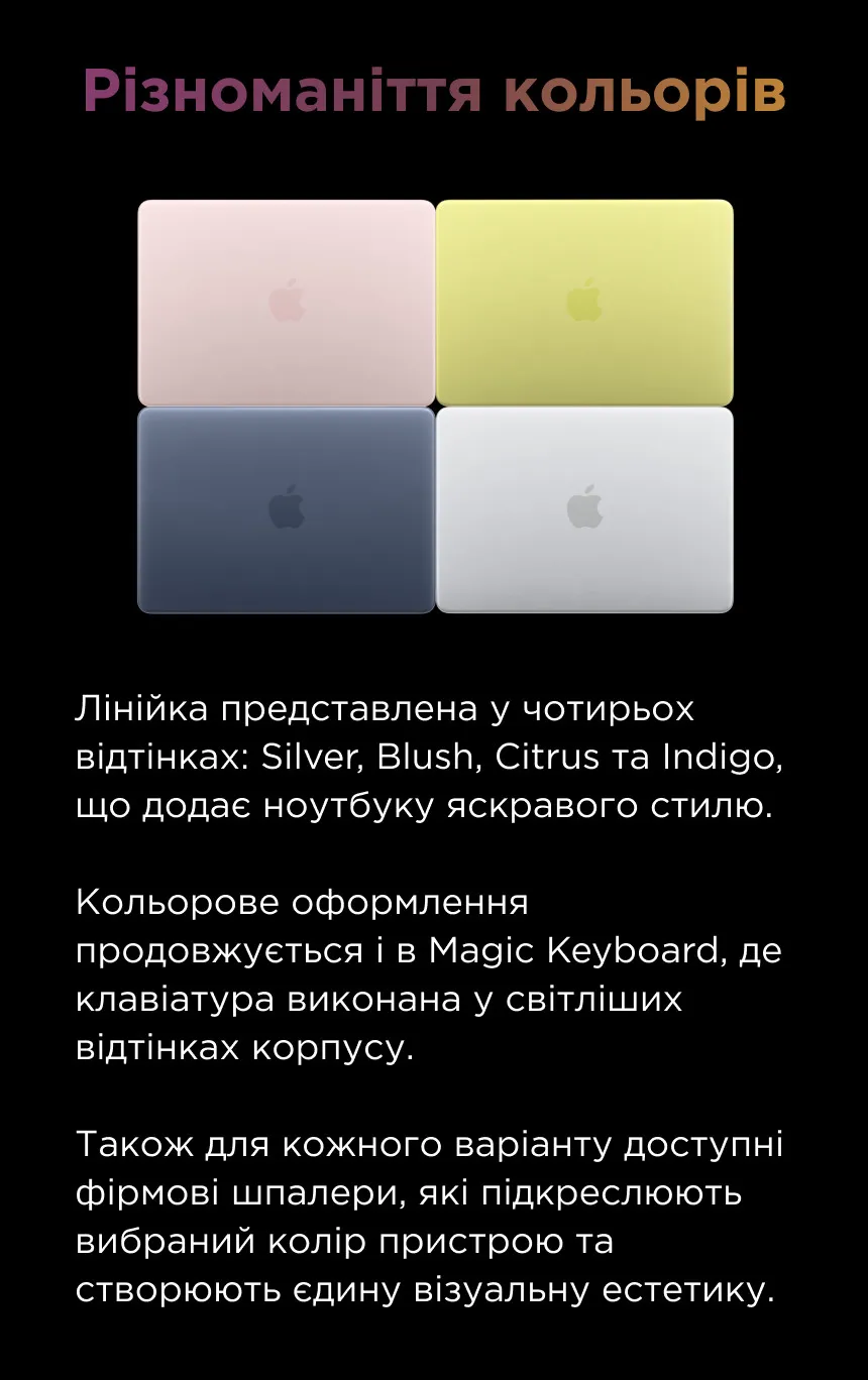 Apple MacBook Neo в 2026 году представлен в цветах: Citrus, Blush, Indigo, Silver.