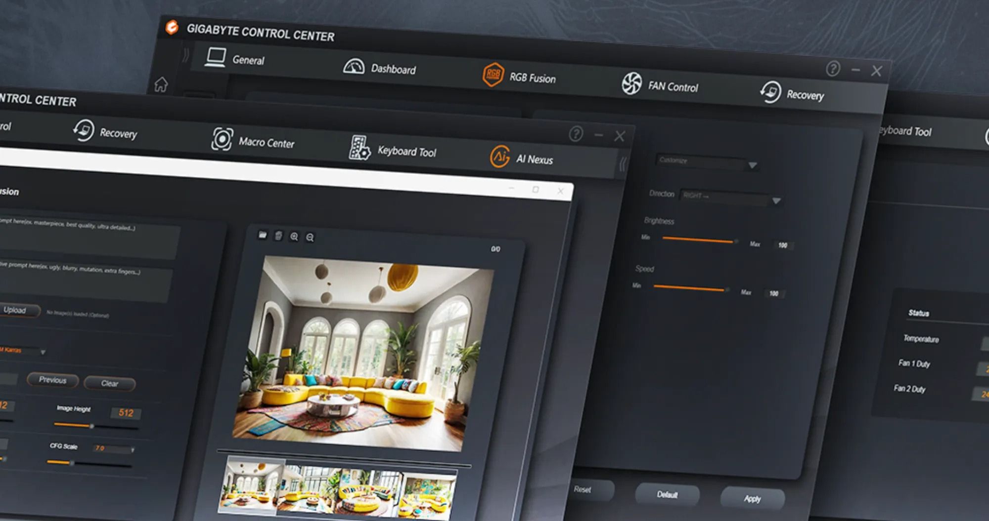 Система охлаждения — одна из самых продвинутых. Она включает вакуумную камеру, жидкий металл, до 7 тепловых трубок и два вентилятора. Даже при пиковой нагрузке температура GPU не превышает 75–80°C, а уровень шума остаётся ниже 45 дБ. Питание видеокарты регулируется динамически, диапазон мощности — от 80 до 175 Вт, что позволяет выбирать между тихим режимом и максимальной производительностью.