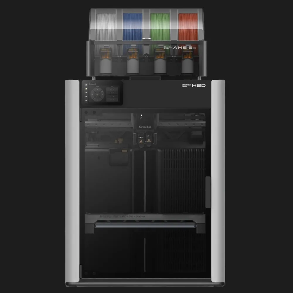 Bambu Lab H2D Laser Full Combo объединяет в себе современные инженерные решения и мощность, достаточную даже для самых сложных задач. Принтер оснащён двумя экструдерами, которые позволяют печатать из разных материалов или комбинировать несколько цветов в рамках одного изделия.