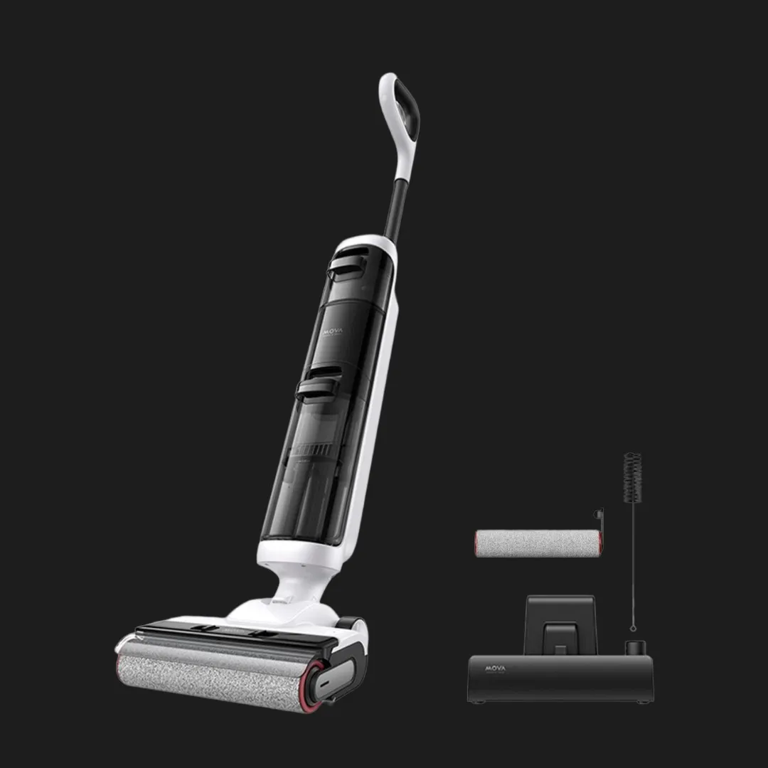 Mova K20 Pro имеет удобную эргономичную конструкцию, которая позволяет легко маневрировать между мебелью, в узких проходах и труднодоступных местах. Устройство отличается продуманным балансом веса и гибким управлением, что делает процесс уборки максимально комфортным даже при длительном использовании.