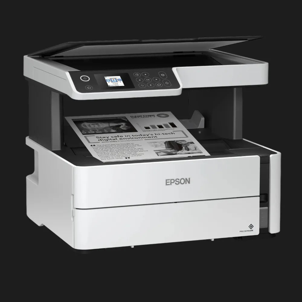 Одним из ключевых преимуществ Epson M3170 является использование системы EcoTank со встроенными резервуарами для чернил. Это позволяет значительно снизить стоимость печати и избавиться от постоянной замены картриджей. Одного набора чернил хватает на десятки тысяч страниц, что делает устройство максимально выгодным для бизнеса и частного использования.