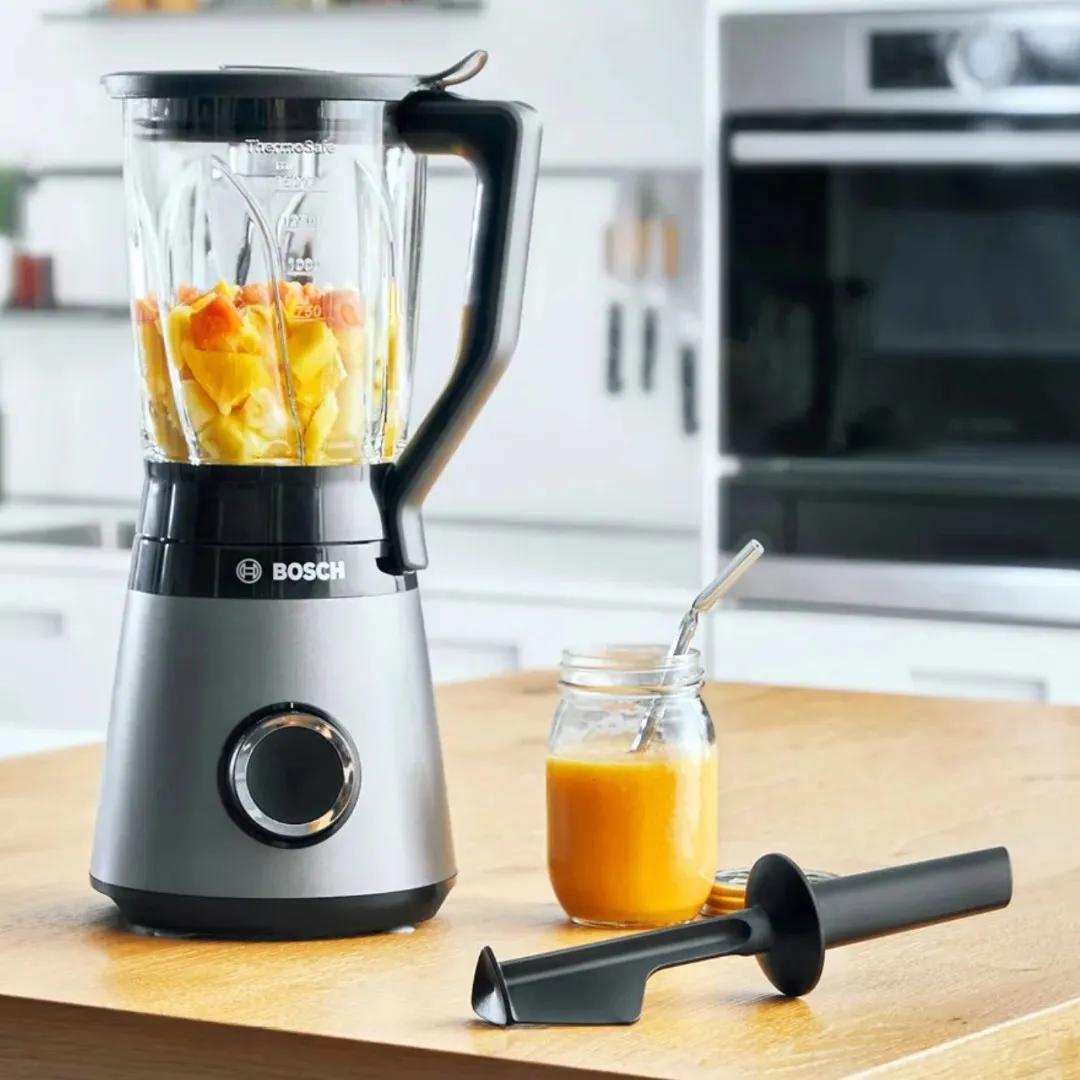 Bosch MMB6172S оснащен двигателем мощностью 1200Вт, который справляется даже с замороженными фруктами и льдом за неполные секунды. Система ProPerformance и лезвия ProEdge из нержавеющей стали обеспечивают однородную консистенцию смузи с минимальными усилиями. Стеклянный графин ThermoSafe объемом 1,5л выдерживает как холодные, так и теплые ингредиенты от полосы до горячих супов.