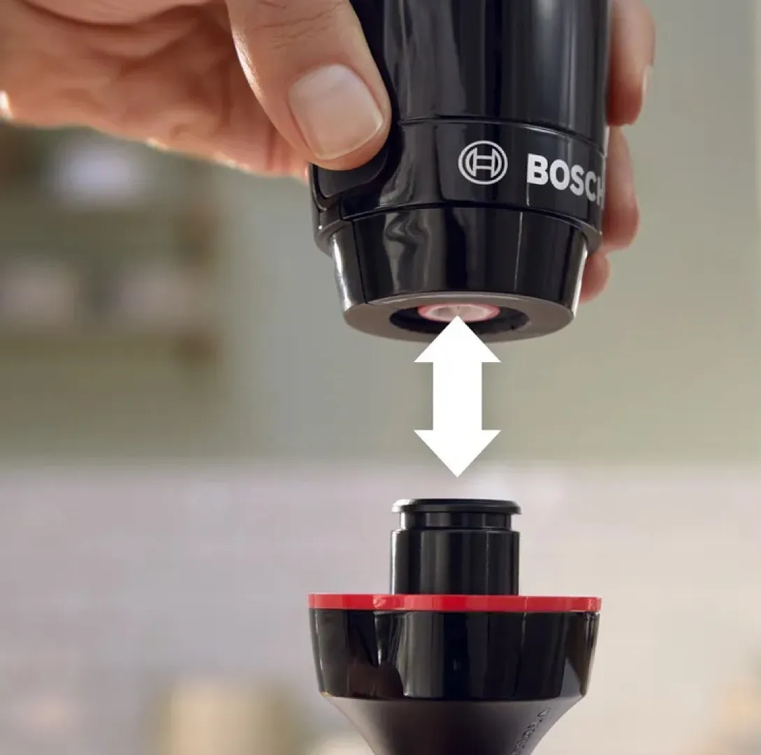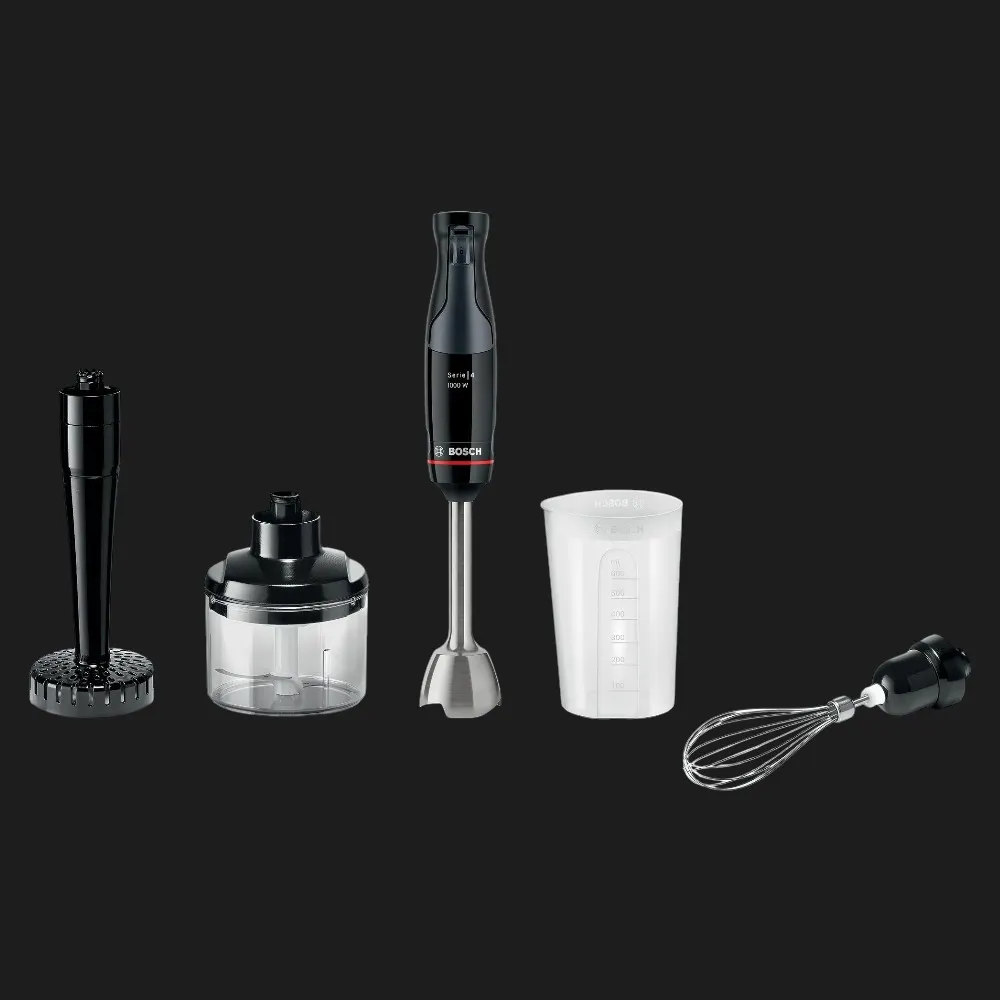 Bosch MSM4B623 — это погружной блендер мощностью 1000 Вт, разработанный для повседневного использования. Он оснащён металлическим ножом с четырьмя лезвиями QuattroBlade, которые обеспечивают быстрое и равномерное измельчение ингредиентов. Эргономичная ручка с плавной регулировкой скорости нажатием одной кнопки позволяет полностью контролировать процесс. Съёмная ножка блендера и насадки — чоппер и венчик — легко моются, а все детали безопасно очищаются в посудомоечной машине. Дизайн в стиле Serie 4 — элегантный антрацитовый корпус с прозрачными вставками гармонично впишется в современную кухню.