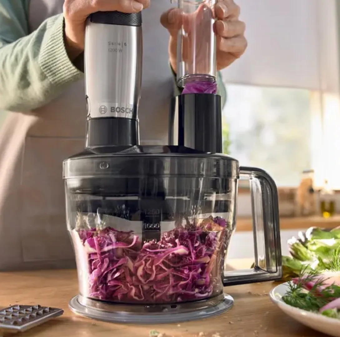В комплекте вы получаете всё необходимое: венчик, чашу-измельчитель, ножку для блендера, мерный стакан и насадки для шинковки. Это значит, что вам не придётся докупать дополнительные приборы. Все части легко снимаются и подходят для мытья в посудомоечной машине. Благодаря этому уборка после готовки не станет проблемой. Всё сделано для того, чтобы сэкономить ваше время и усилия. Приобрести модель Bosch MSM6M871 выгодно можно в Ябко.
