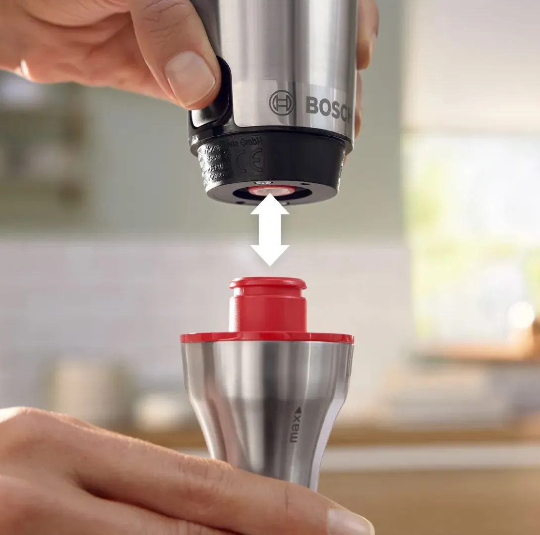 Bosch MSM6M871 — это погружной блендер мощностью 1200 Вт, который легко справляется даже с твердыми продуктами. Благодаря продуманной форме и эргономичной ручке его удобно держать в руке, даже если вы готовите долго. Он идеально подходит для ежедневного использования: измельчение овощей, приготовление смузи или соусов становится делом нескольких минут. Его дизайн выдержан в современном стиле серии ErgoMaster и отлично впишется в интерьер кухни.