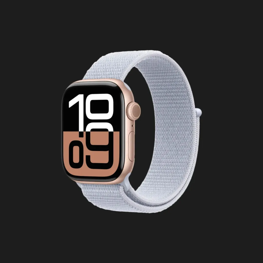Apple Watch Series 10 GPS 46mm Rose Gold Aluminum Case with Blue Cloud Sport Loop