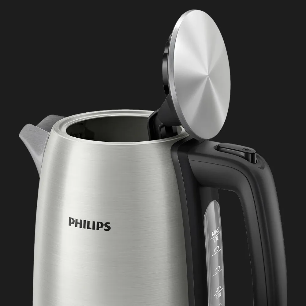 Разработчики Philips уделили особое внимание деталям, чтобы использование чайника было максимально удобным и безопасным. Крышка устройства открывается широким нажатием на кнопку, что исключает прямой контакт с паром и позволяет легко наполнять емкость объемом 1,7 литра непосредственно через носик.