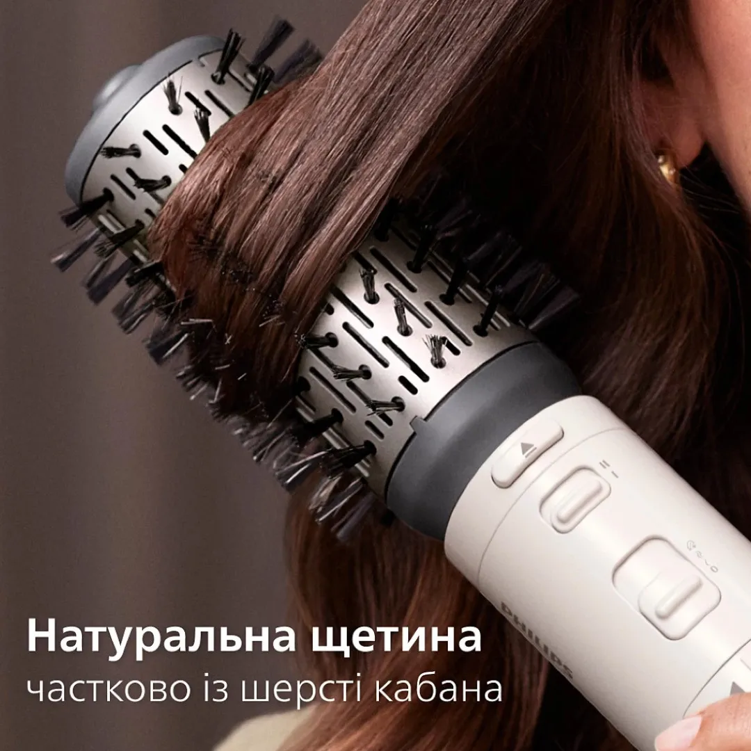 Фен-щетка Philips Series 7000 создана с акцентом на сохранение естественной красоты волос. Специальная технология защищает их от пересушивания, делая пряди гладкими и послушными. Даже ежедневное использование не вредит волосам, а наоборот помогает поддерживать их ухоженными. Такая функциональность делает прибор идеальным выбором для тех, кто ценит качество и бережный уход. Philips в очередной раз доказал, что стиль и здоровье могут идти вместе.