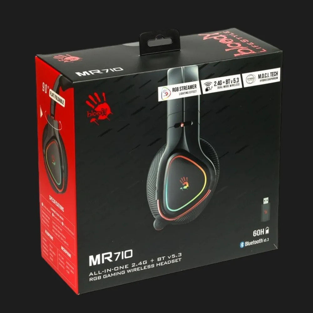 Bloody MR710 поддерживает три режима связи: 2.4 ГГц, Bluetooth 5.0 и провод с 3.5-мм разъемом — идеально подходит для ПК, консолей, планшетов и смартфонов. Переключение между режимами происходит быстро и без потери качества. В Ябко эта гарнитура доступна с полным комплектом кабелей и настроек — никаких сокращений в наборе. Покупка именно здесь означает честную цену и уверенность в совместимости. Ваша универсальная гарнитура уже ждет вас.