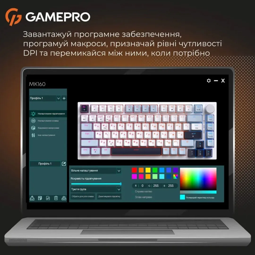 Подсветка GamePro MK160 Outemu Red равномерно подчеркивает каждый ряд клавиш, создавая приятную атмосферу для работы или игры. Сияние мягкое, не слишком яркое, но достаточное для комфортного использования в темноте. Пользователь может изменять режимы и интенсивность, добавляя клавиатуре индивидуального характера. Освещение остается стабильным, не мерцает и не отвлекает. Это не просто декоративный элемент, а часть удобства и ритма при работе.