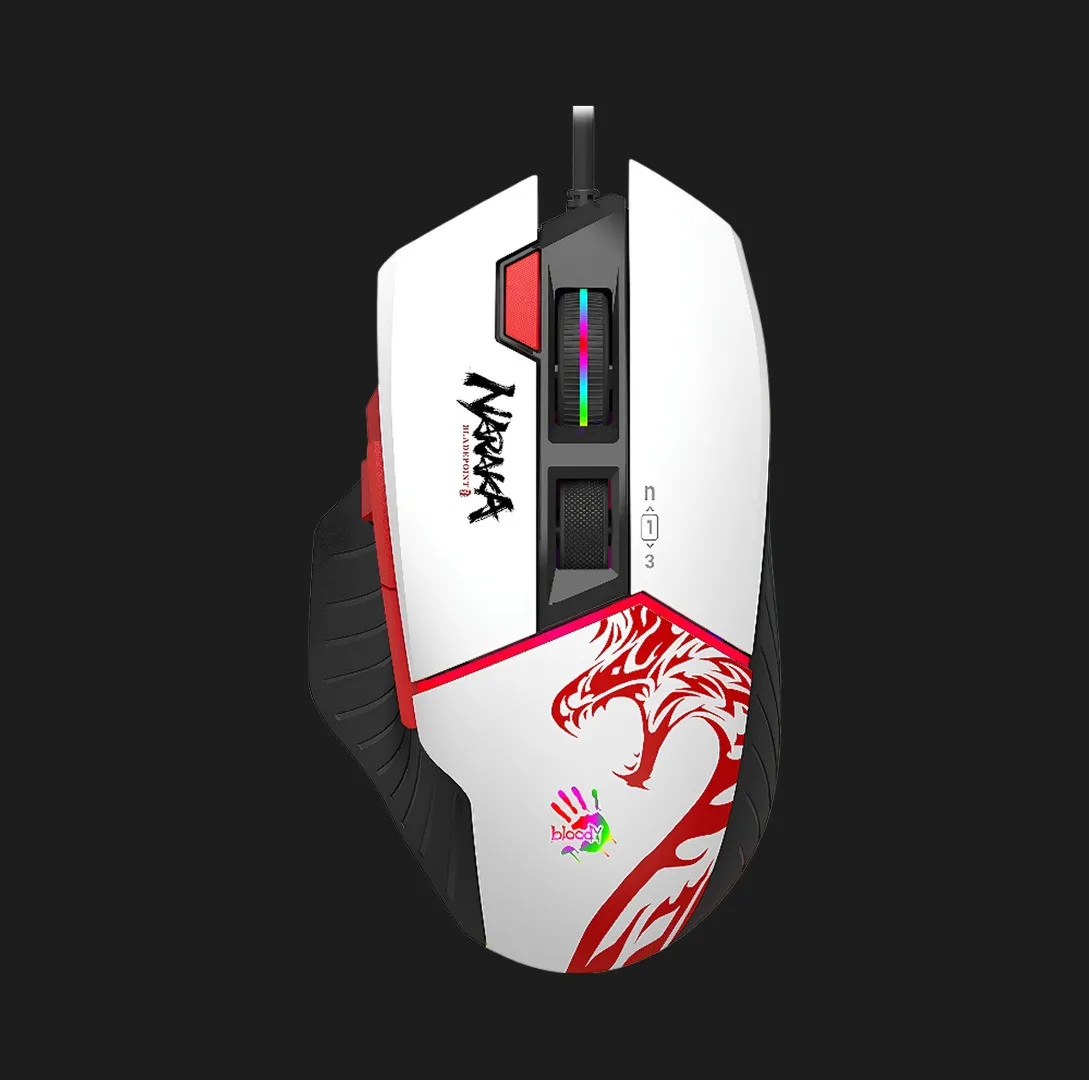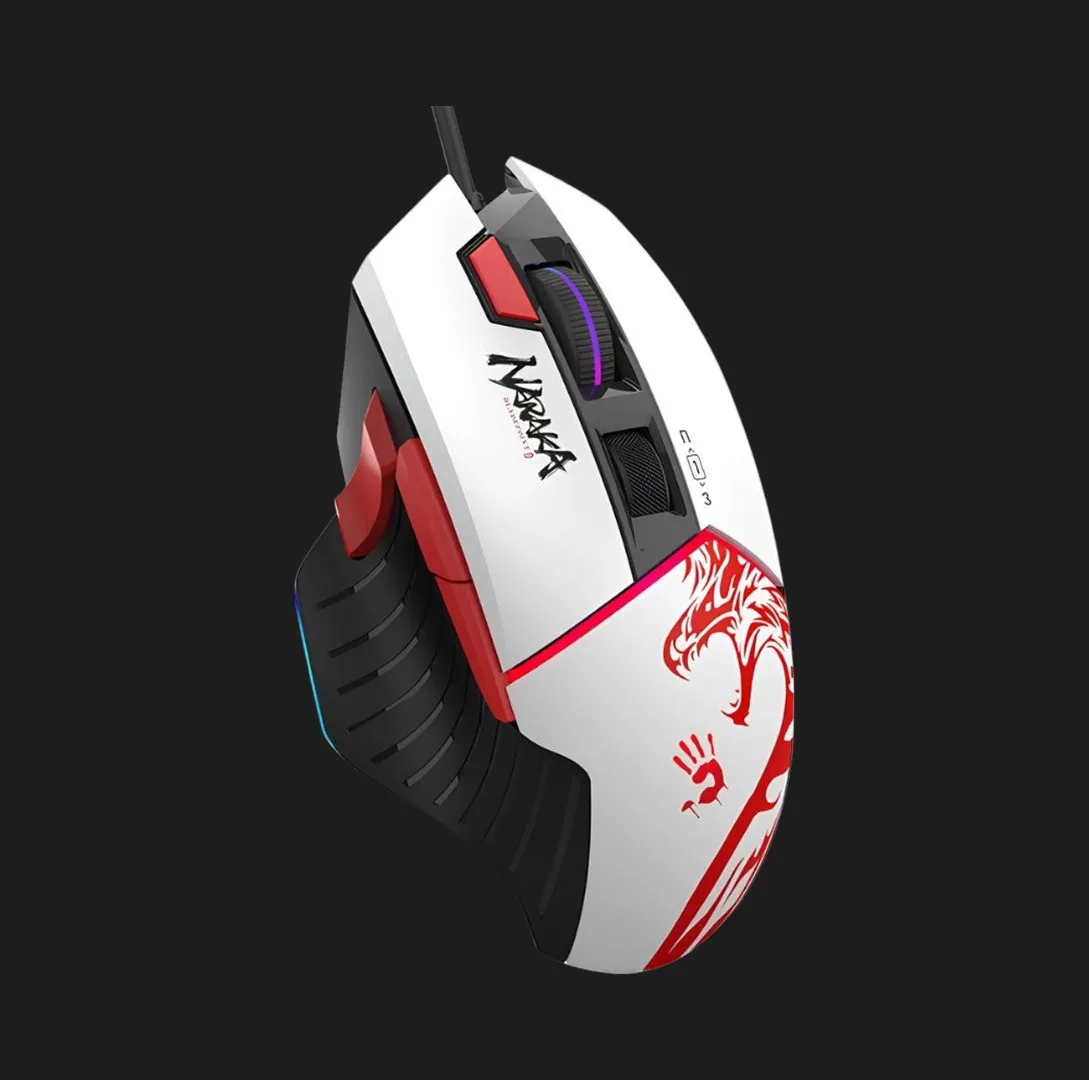 Bloody W95 Max виділяється унікальним оформленням у стилі гри Naraka: Bladepoint. Світлий корпус із червоно-чорними елементами виглядає стильно та агресивно. Такий дизайн гармонійно впишеться в геймерський сетап і додасть емоцій у гру. Це поєднання стилю й функціональності для тих, хто хоче більше, ніж просто миша. У магазині Ябко цю модель можна придбати вигідно, з гарантією та повною комплектацією.