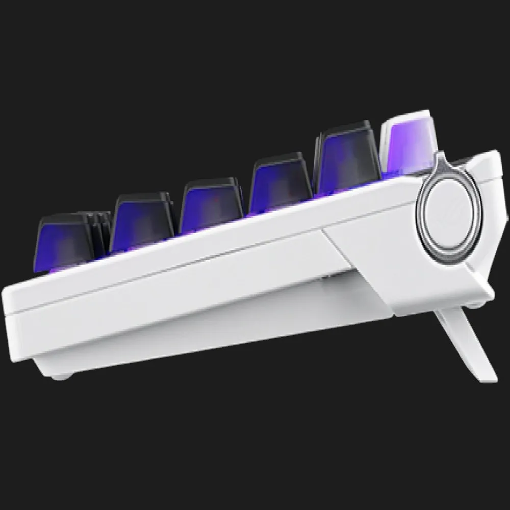 ASUS ROG Azoth X NX поддерживает три режима подключения: проводной USB‑C, Bluetooth и 2,4 ГГц RF, что обеспечивает максимальную гибкость использования с разными устройствами. OLED-дисплей и трехпозиционный регулятор позволяют изменять настройки и отображать состояние клавиатуры непосредственно на устройстве.