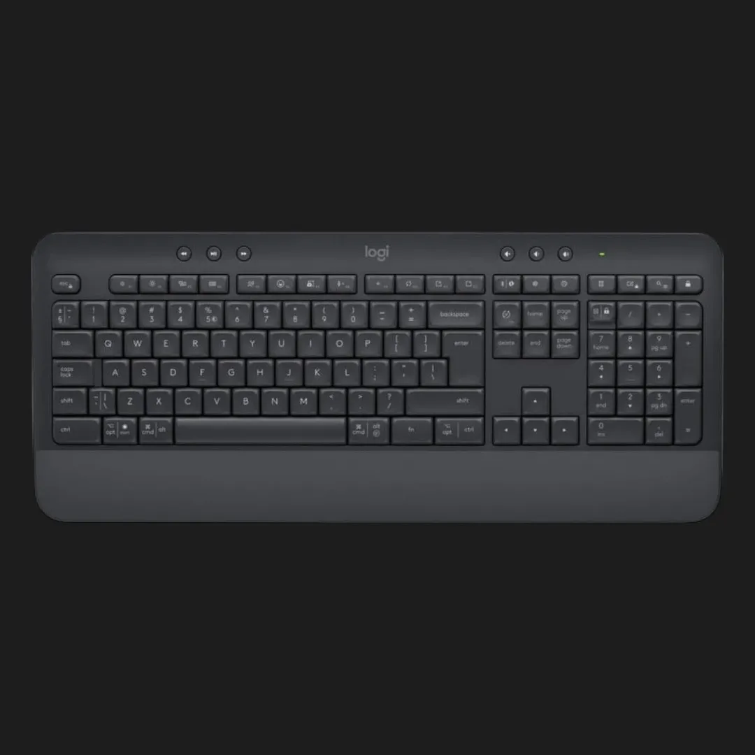 Logitech Signature K650 использует беспроводное подключение через USB-приемник Logi Bolt, что гарантирует стабильный сигнал и быстрый отклик без задержек. Такое решение особенно удобно для стационарных компьютеров и ноутбуков, где важна надежность соединения без необходимости постоянной настройки.