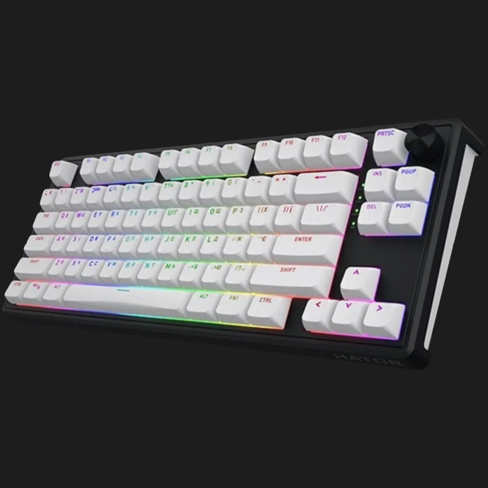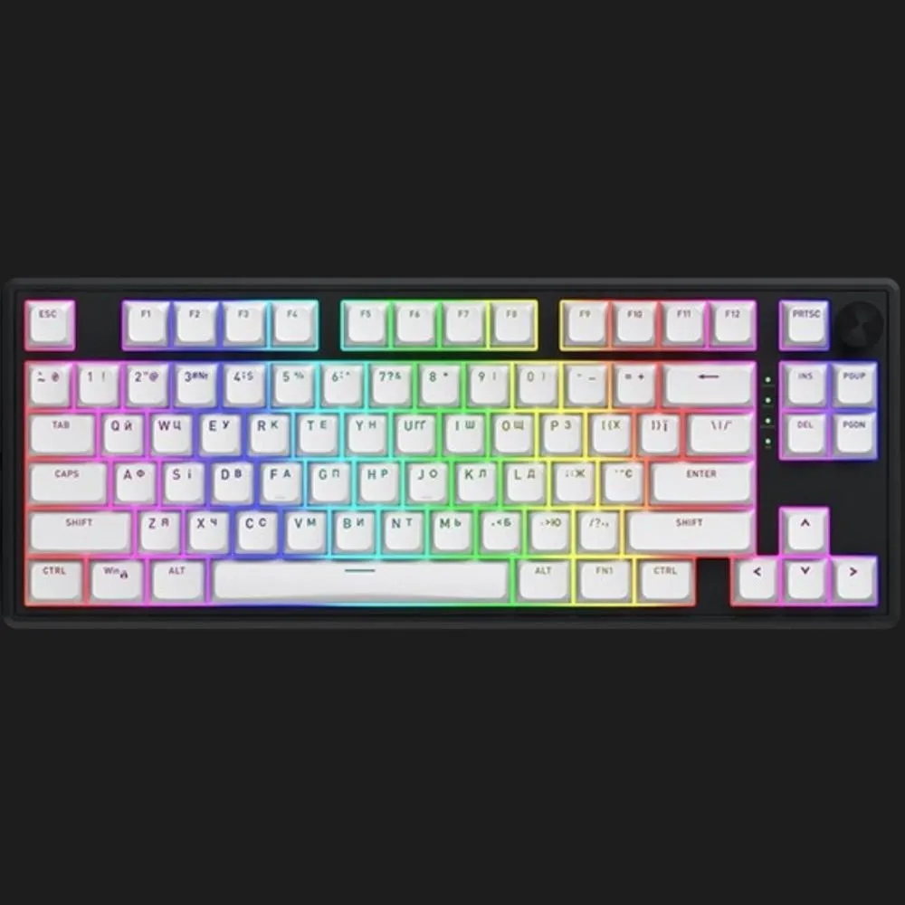 Эта клавиатура сочетает компактный формат со стильным двухцветным дизайном — белые клавиши на черном корпусе выглядят сдержанно, но современно. Ее размер 80% идеально подходит для геймеров и пользователей, желающих сэкономить место на столе, не отказываясь от всех важных клавиш. Она выглядит премиально, и ее дизайн подчеркивает внимание к деталям — это не просто инструмент, а часть вашего рабочего или игрового этапа. Благодаря эстетике цветов клавиатура легко впишется в любую обстановку.