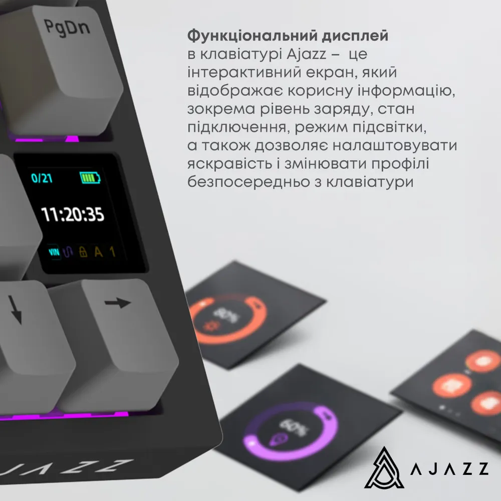 Эта клавиатура не только функциональна, но и визуально привлекательна — благодаря яркой RGB-подсветке с миллионами цветовых комбинаций ваш девайс будет гармонично дополнять игровую или рабочую станцию. Подсветка не отвлекает, но создаёт атмосферу, которая соответствует вашему настроению. Дополнительно TFT-экран позволяет персонализировать графику и отображать системную информацию без необходимости стороннего программного обеспечения. Такой подход делает взаимодействие с клавиатурой живым, современным и приятным.