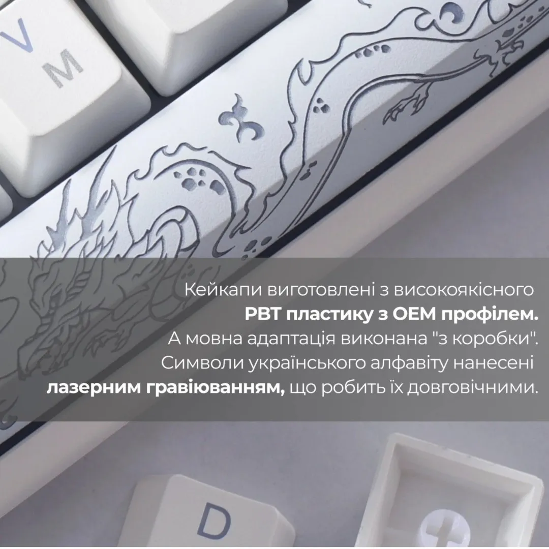 Высококачественные кейкапы из PBT-пластика изготовлены по технологии Double-Shot, что гарантирует долговечность надписей даже после активного использования. Надежность здесь — не громкое слово, а практический стандарт.
