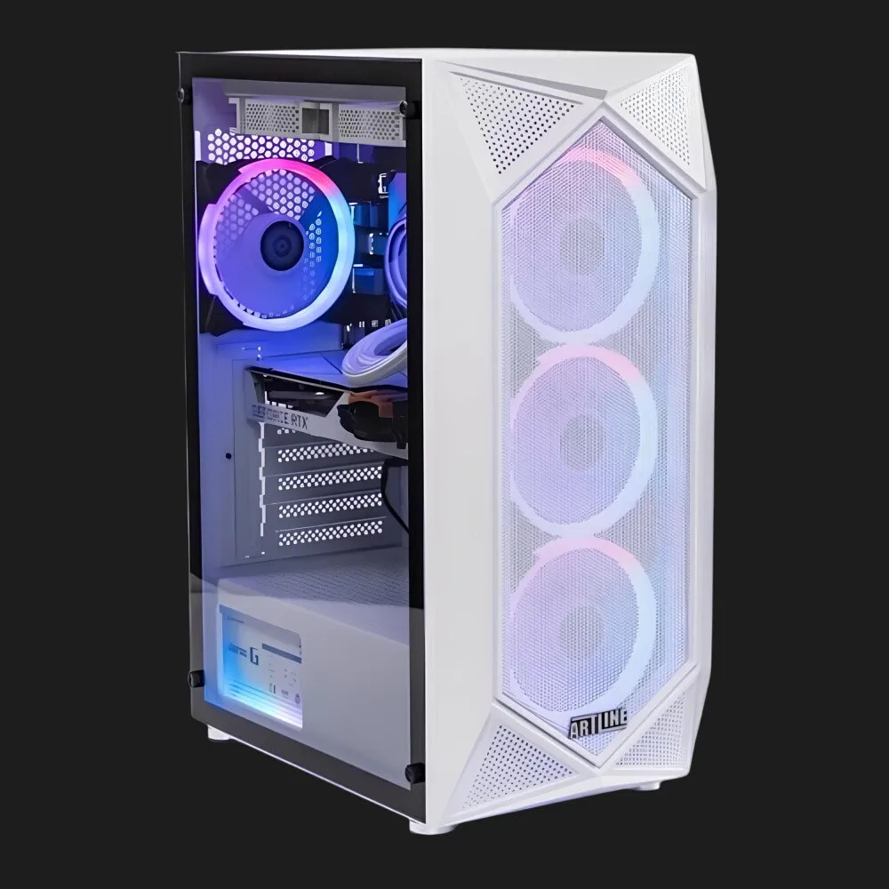 Белый корпус ARTLINE X75WHITE отличается не только стильным, но и практичным дизайном. Его классический белый цвет в сочетании с закаленным стеклом на боковой панели создает элегантный вид, подчеркивающий современность и технологичность устройства. Это не просто компьютер, а изысканное дополнение интерьера, которое будет гармонично смотреться в любом рабочем или игровом пространстве.