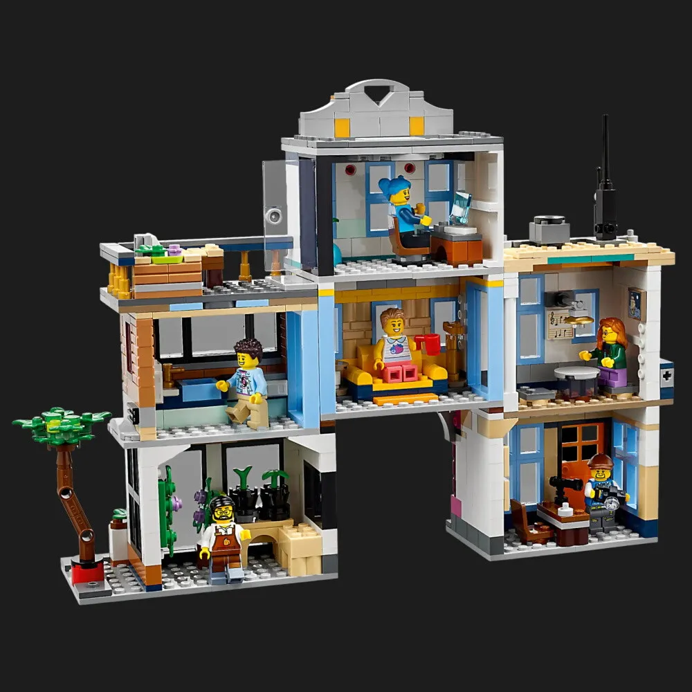 LEGO Creator Main Street удивляет богатством архитектурных элементов и возможностью трансформации. Вы можете построить три разных версии городской сцены – главную улицу с магазинчиками, гостиницу с уютной площадью или атмосферную музыкальную улицу.